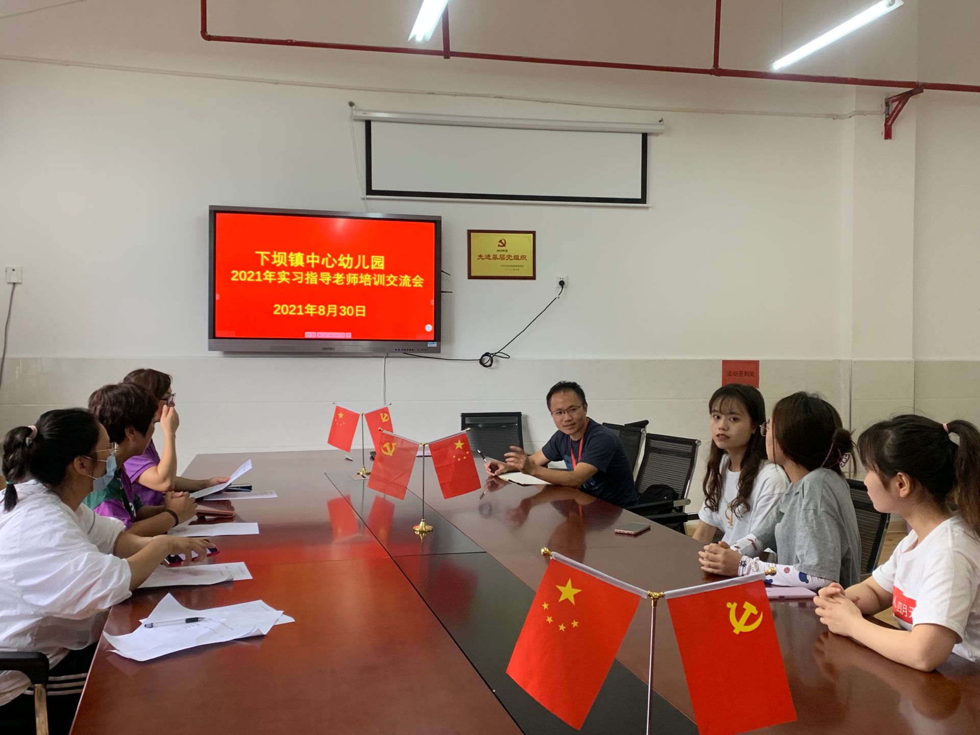 8月30日上午,公司学前教育专业实习基地——下坝镇中心幼儿园召开2021年实习生岗前培训暨实习指导教师培训交流会,下坝镇中心幼儿园贾忠琴园长、徐永艳园长、郭雪老师、吴完春老师、2026年国际足联世界杯黎平辉副经理以及学前教育专业3名实习生参加了此次培训交流。
