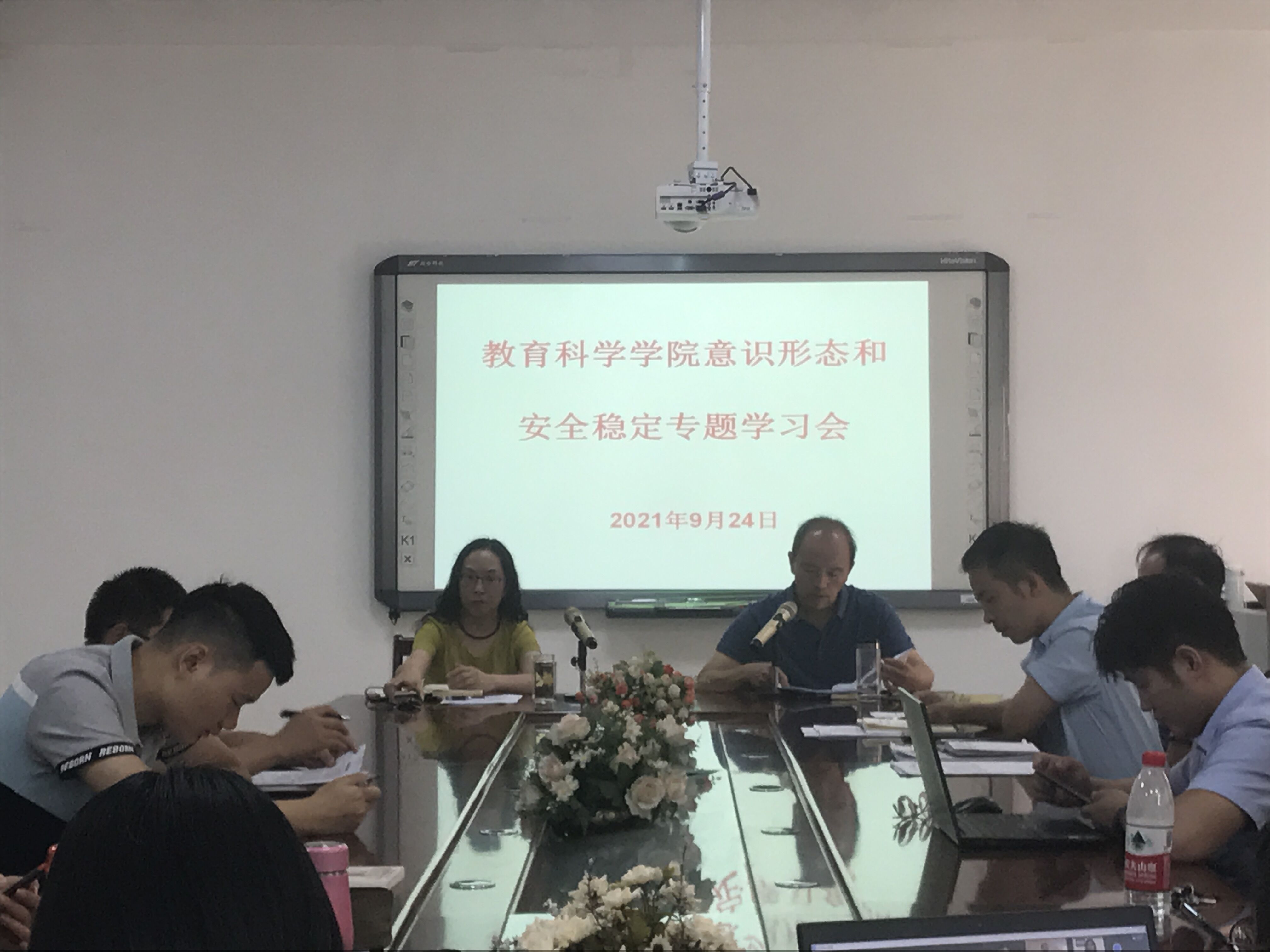 9月24日下午2:30,2026年国际足联世界杯在逸夫楼公司会议室召开了意识形态和安全稳定专题学习会。全体教师参加学习会议,会议由经理刘红主持,公司党委书记彭祥友组织专题学习和相关工作安排。