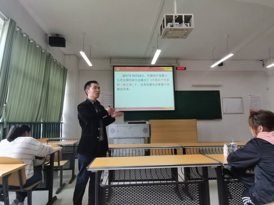 首先,袁川老师讲述了《党章》是怎样经过多次修改和完善的,以及介绍了作为党员和入党积极分子学习党章的重要意义,其次,对历届《党章》的发展历程进行介绍,从党的一大通过《中国共产党的第一个纲领》开始,一直到党的十九大,每一次大会都有其深刻的意义与价值。最后,袁川老师对全体学员提出希望,要认真研读《党章》,理解其所蕴含的内容和含义,争取早日向党组织靠拢。