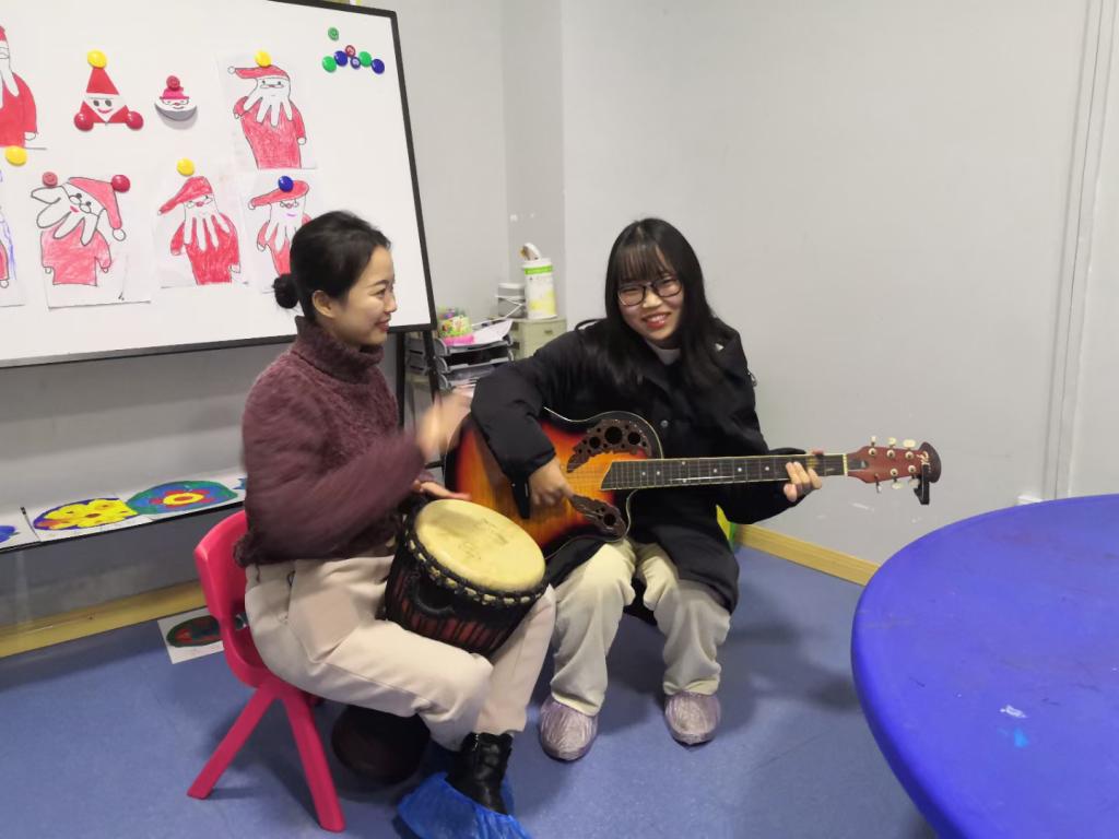 社团从2020年10月30日开始的每个周五都由一名主席团的成员带队前往聚爱之城特殊机构,在这里用曼陀罗涂鸦绘画陪伴这些小朋友,每次送教完成后,小伙伴们都会将自己在这次艺术送教活动后的感想与小朋友们的表现记录下来并分享给这些小朋友的家长。在本学期最后一次送教活动中,我们除了常规的画画活动外,还用音乐来陪伴这些小朋友,并且还为他们带去了我们的小礼物。活动最后,我们大家一起拍下了大合照,留下了美好的印记。