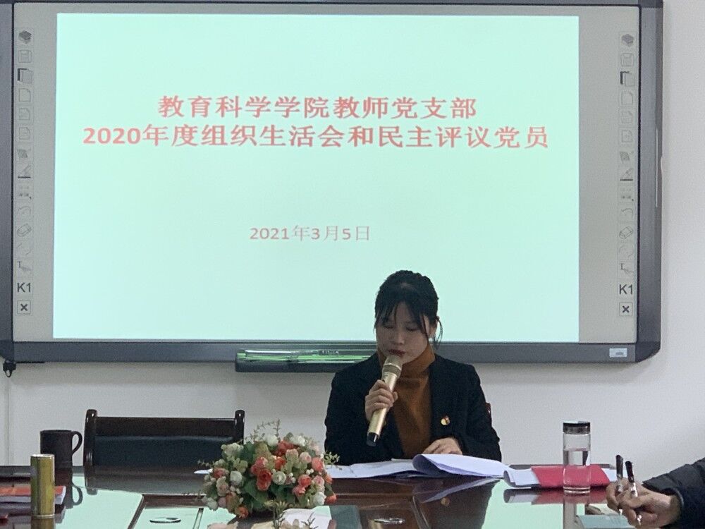会前,党支部成员开展谈心谈话,并罗列学习清单让每位党员教师进行学习。会上,李琴代表支委向党员大会述职,作2020年的工作总结,2020年以来,教师党支部按期开展支委活动,党日主题活动等,通报党支部委员会查摆存在的问题,党员对支部班子提批评意见。2021年支部班子将继续努力,为各位教师党员开展更多更丰富的党员活动。随后每位教师党员采取个人自评和党员互评的方式进行了批评与自我批评,对照党章,严格遵规守纪守法方面、履行党员义务方面、履行岗位职责方面查找不足与问题,并就自己存在的问题提出了整改措施。大家都瞄准了问题,查明了原因,制定了措施,明确了方向。在认真查找自身问题的同时,虚心听取其他同志的意见、建议,开展了坦诚的批评与自我批评。紧接着,每位党员认真进行了民主评议,并回收了测评表。