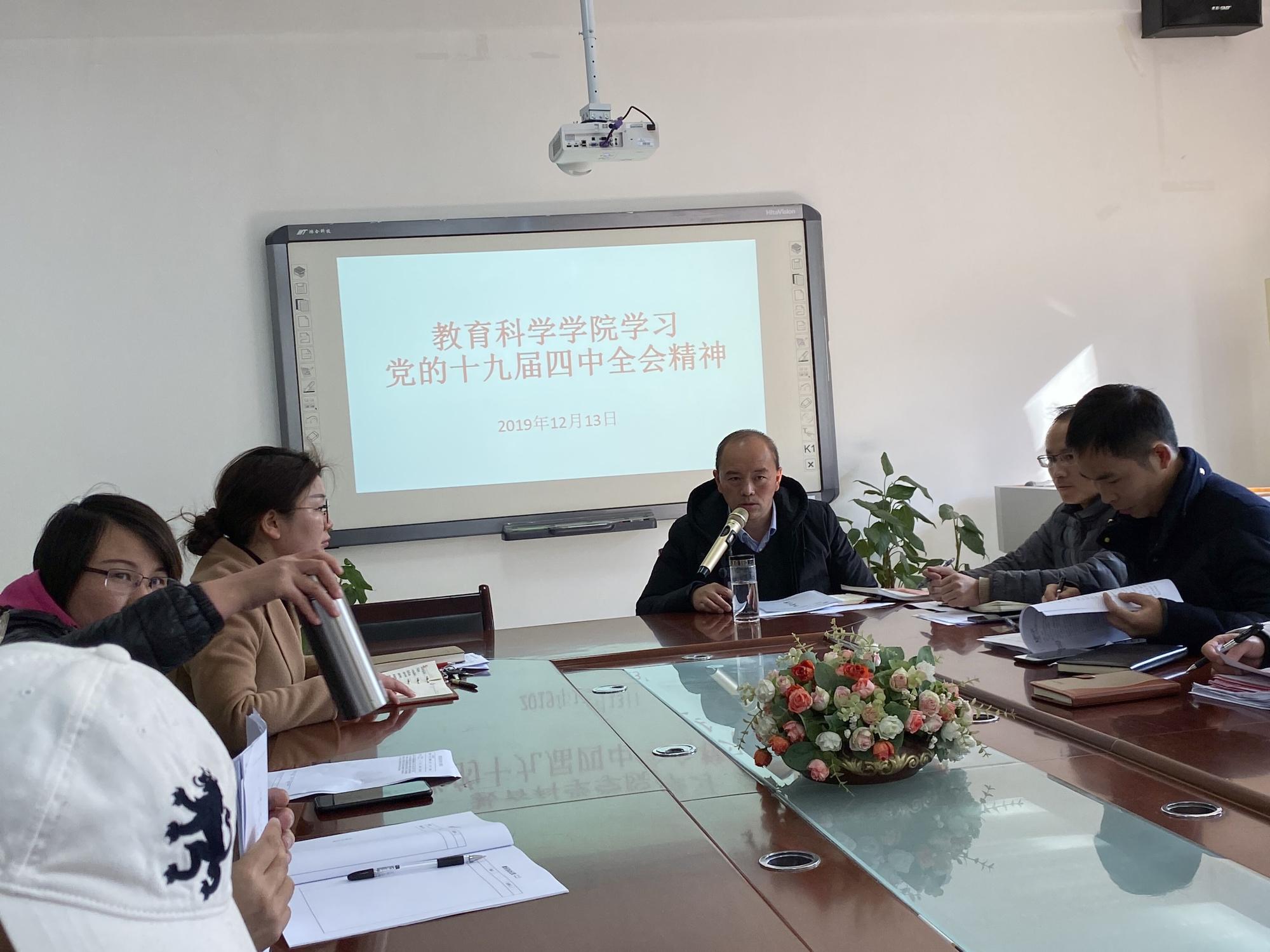 12月13日下午,公司党委书记彭祥友在逸夫楼三楼会议室为本公司教职工宣讲学习党的十九届四中全会精神。
