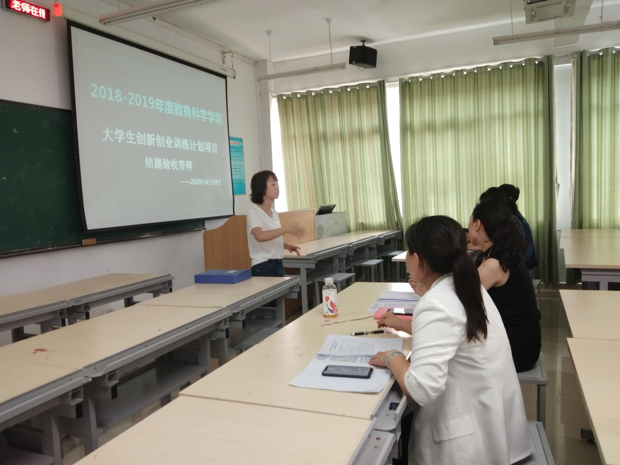 此次参与答辩的项目组共有7支,由郑玉莲、罗艳华、刘婧、倪磊4位专业教师对他们的研究成果进行验收答辩,申利丽老师参与其中,并强调答辩规则、细节,以确保验收答辩顺利进行,5位18级艺术教育的同学作为验收答辩现场助理。
