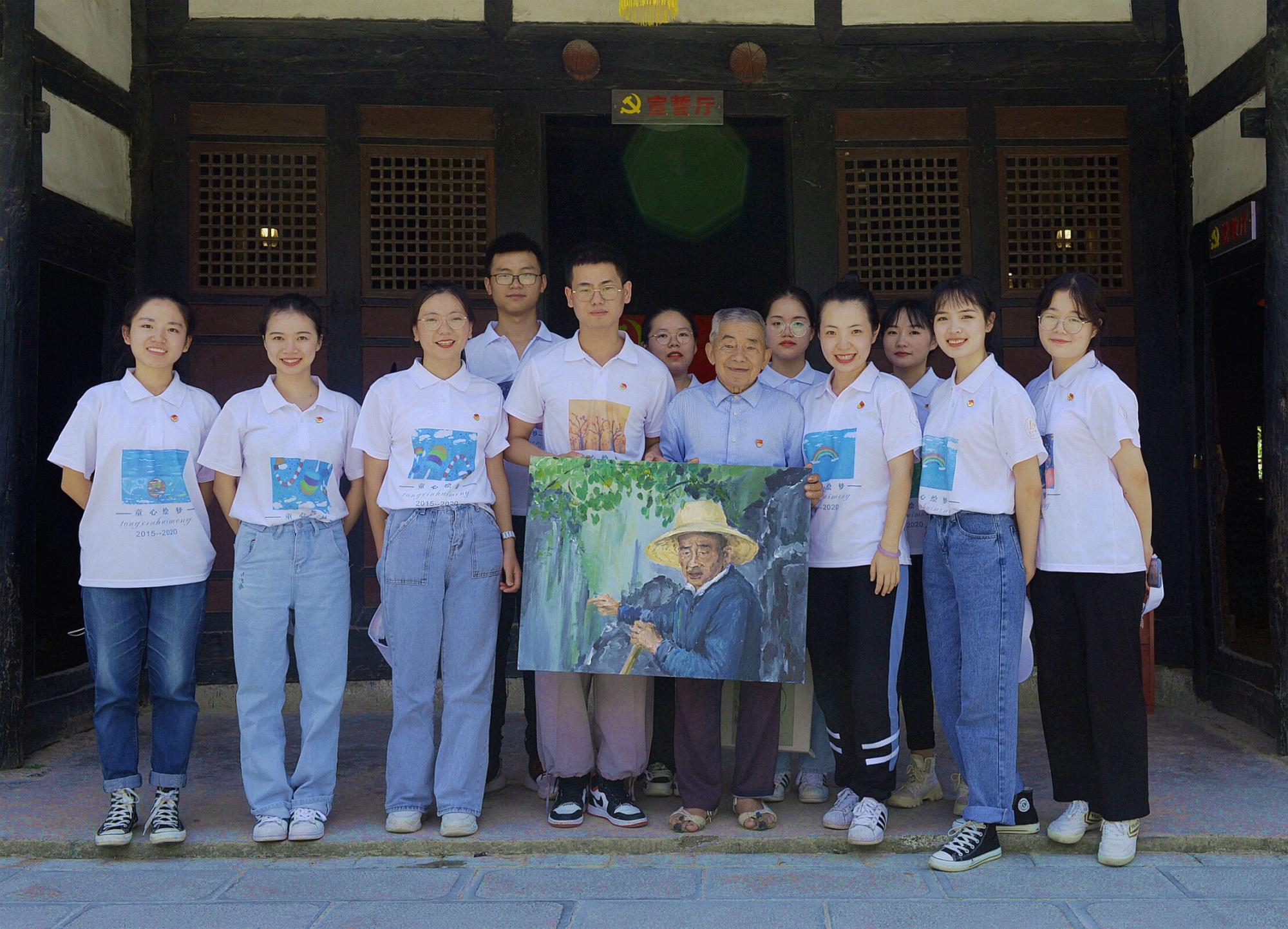 中午11时,童心绘梦团队到达团结村拜访黄大发同志,并有幸得到了他的亲自接待。听完了黄大发爷爷的故事后,童心绘梦团队亲手将为黄大发爷爷画的肖像画送到了他的手上,还和他讲述了团队正在做的事情,分享了团队的经历与心路历程。黄大发爷爷不仅亲自为童心绘梦录制了加油视频,还告诉团队成员们要将青春挥洒在祖国最需要你的地方,做老员工该做的事情,要有责任心要有青年担当,团队成员听后备受鼓舞。