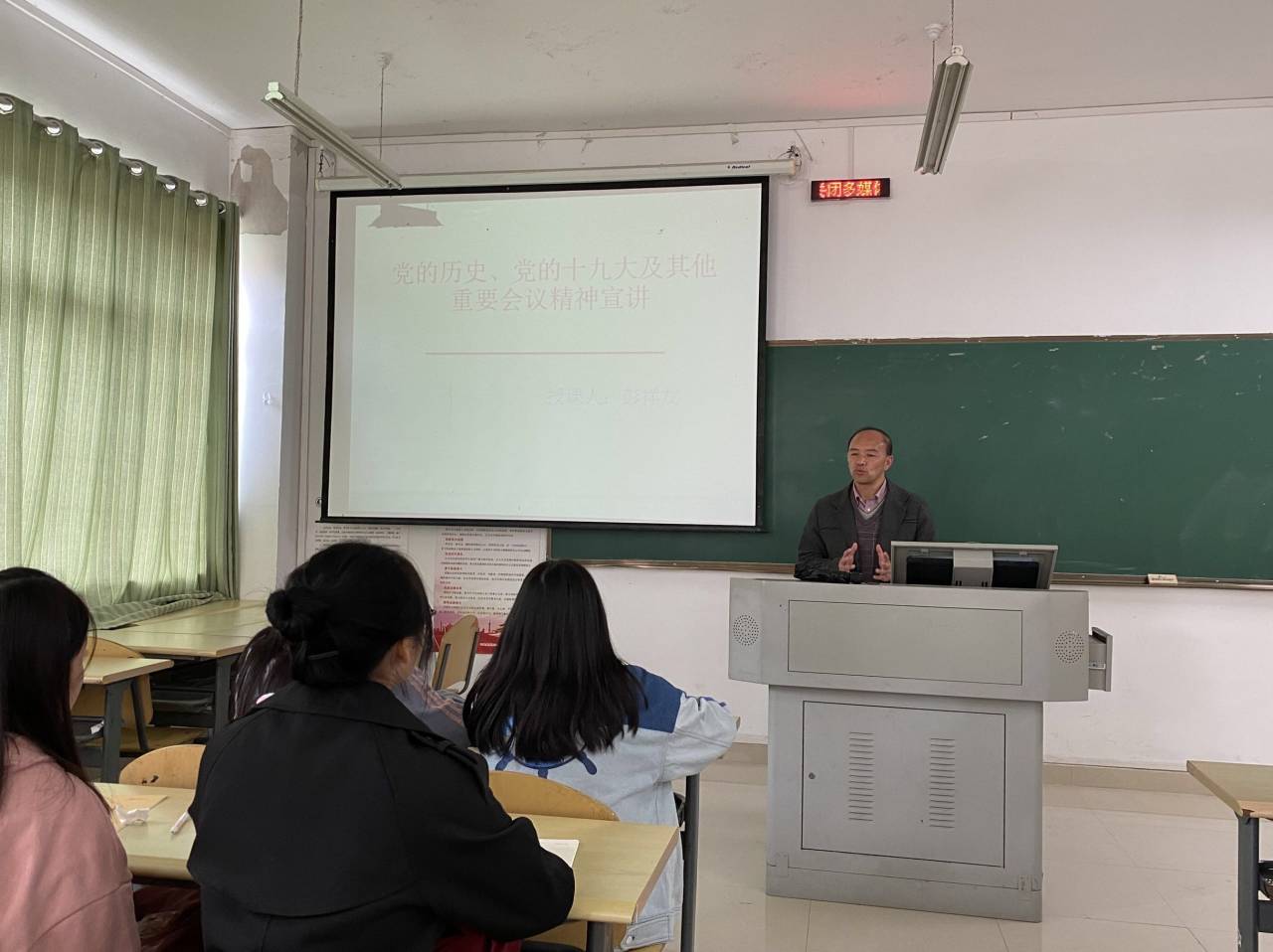 开班典礼结束后,彭祥友以“为什么要入党”、“入党之后该做什么”等问题抛砖引玉,围绕 “中国共产党的诞生、成立”、“党的发展历程及重要会议”、“党的十九大”及习近平总书记重要讲话精神等内容为主题,开启了公司第50期入党积极分子培训班的第一场讲座。讲座上,他以中国共产党的光辉发展历程为线索,从党的诞生成立到党的十一届三中全会,再到十九大的顺利召开,充分论述了中国共产党的伟大,也通过大量事例充分论证了中国共产党是历史与人民的必然选择。他强调每位入党积极分子必须坚决拥护党的领导,在生活学习中要严格要求自己,身正为范,在员工群体中起到模范带头作用,积极响应党的号召,认真学习习近平新时代中国特色社会主义思想,用理论武装头脑,提高自身的思想觉悟。