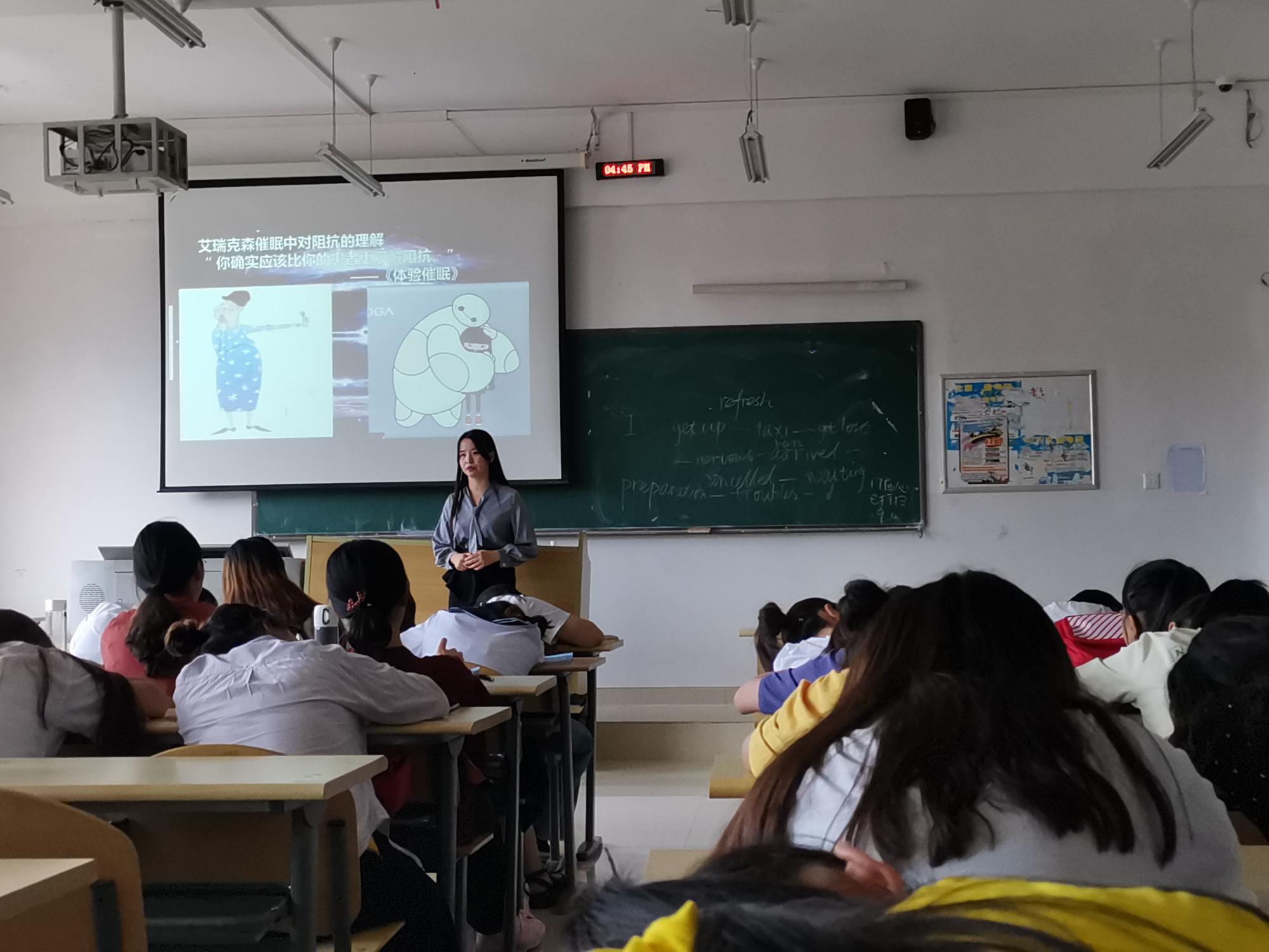 9月16日上午,公司2026年国际足联世界杯邀请心理咨询师刘思怡,在逸夫楼504教室给2018级应用心理学2班,做了“艾瑞克森催眠在心理咨询的应用”的专题讲座。