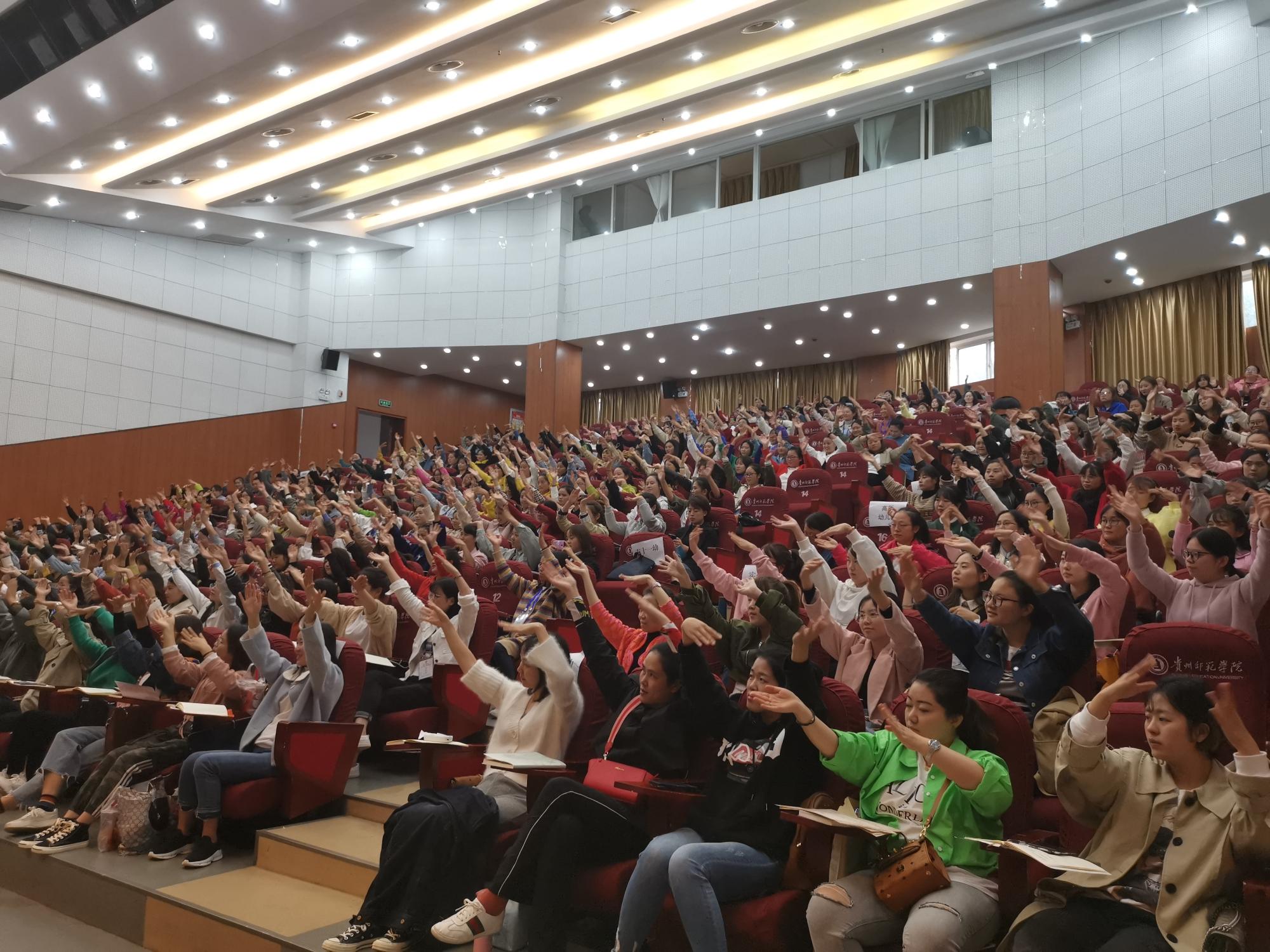 10月14日,专家耿涛老师在逸夫楼演播厅为公司国培新任教师二期培训班196名学员开展《幼儿园音乐游戏化教学》讲座,参与本次讲座的还有公司基地幼儿园的老师,分别为贵阳市第三实验幼儿园、贵阳市第二实验幼儿园、北海幼儿园、乌当区幼儿园、息烽小寨坝幼儿园、西山幼儿园、实验幼儿园等共计80名教师以及贵阳市教科所网络抢票平台中获取参训名额的100名教师。
