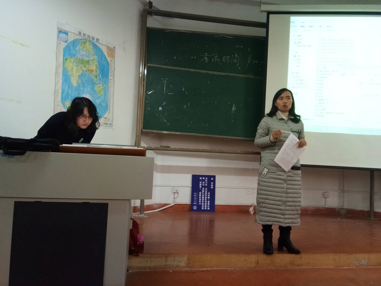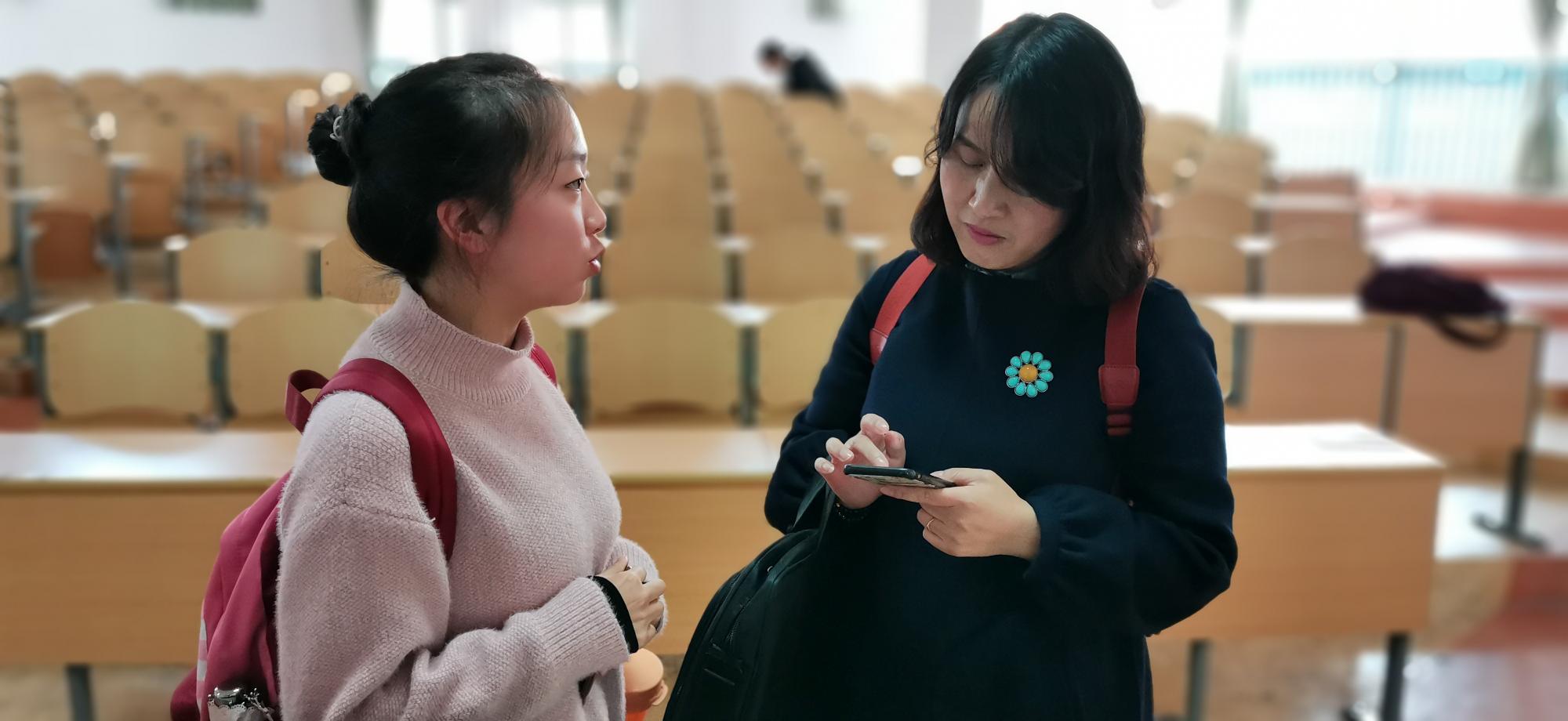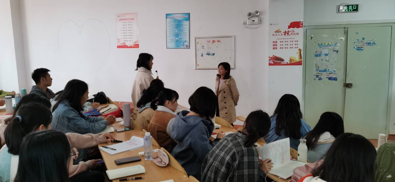 课堂上王老师在与员工互动
