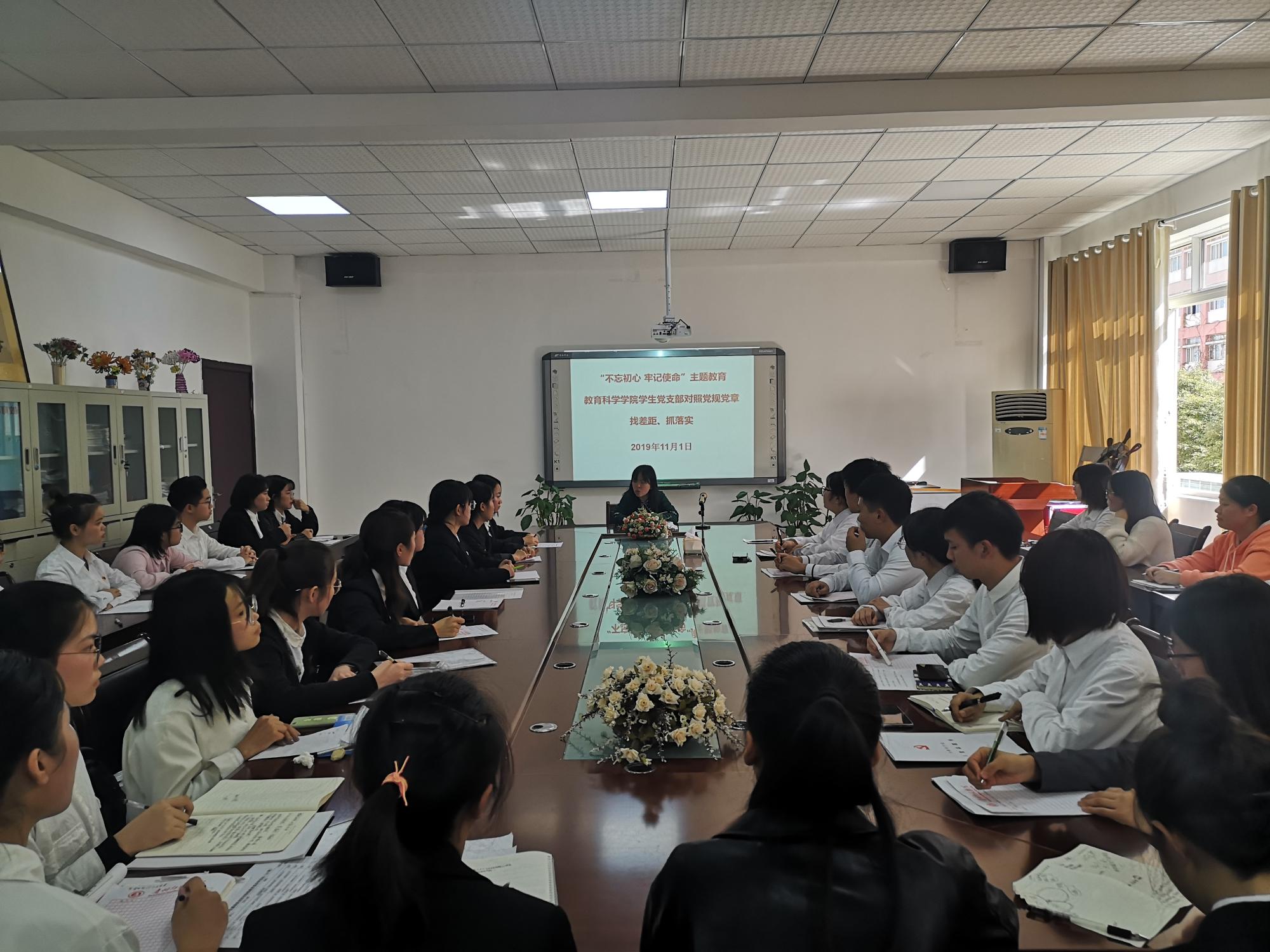 11月1日,2026年国际足联世界杯员工党支部在逸夫楼321会议室集中开展“不忘初心、牢记使命”主题教育之员工党员对照党规党章找差距、抓落实活动。本次主题教育由员工党支部书记申苒主持,全体员工党员到场参加。