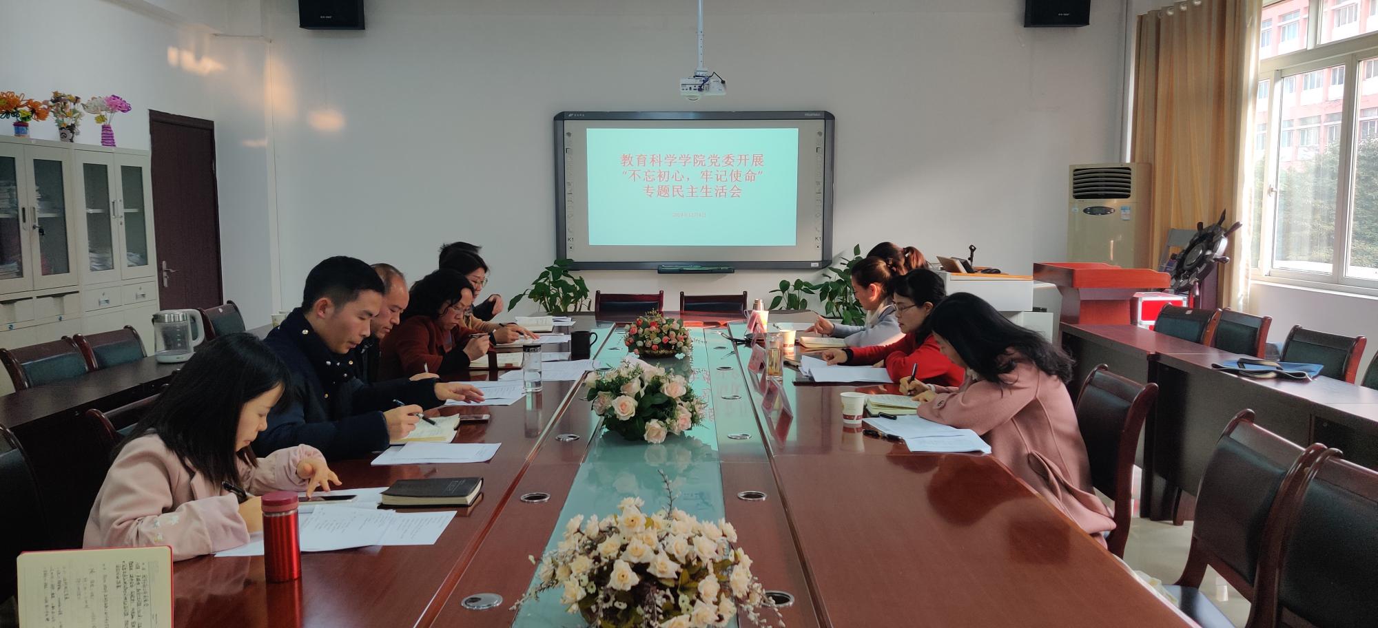 2019年12月9日下午,公司党委在逸夫楼会议室召开了2019年“不忘初心、牢记使命”专题民主生活会。公司党委委员、副董事长郭文,主题教育办督导组邹晓青和聂冬梅,监督组陈文秋,公司党委书记彭祥友、经理兼党委副书记刘红、党委副书记傅小芳、副经理黎平辉、副经理袁川参加了会议。教师党支部书记李琴、员工党支部书记申苒、团委书记张源、工会主席主懿芹列席了会议。会议由彭祥友同志主持。