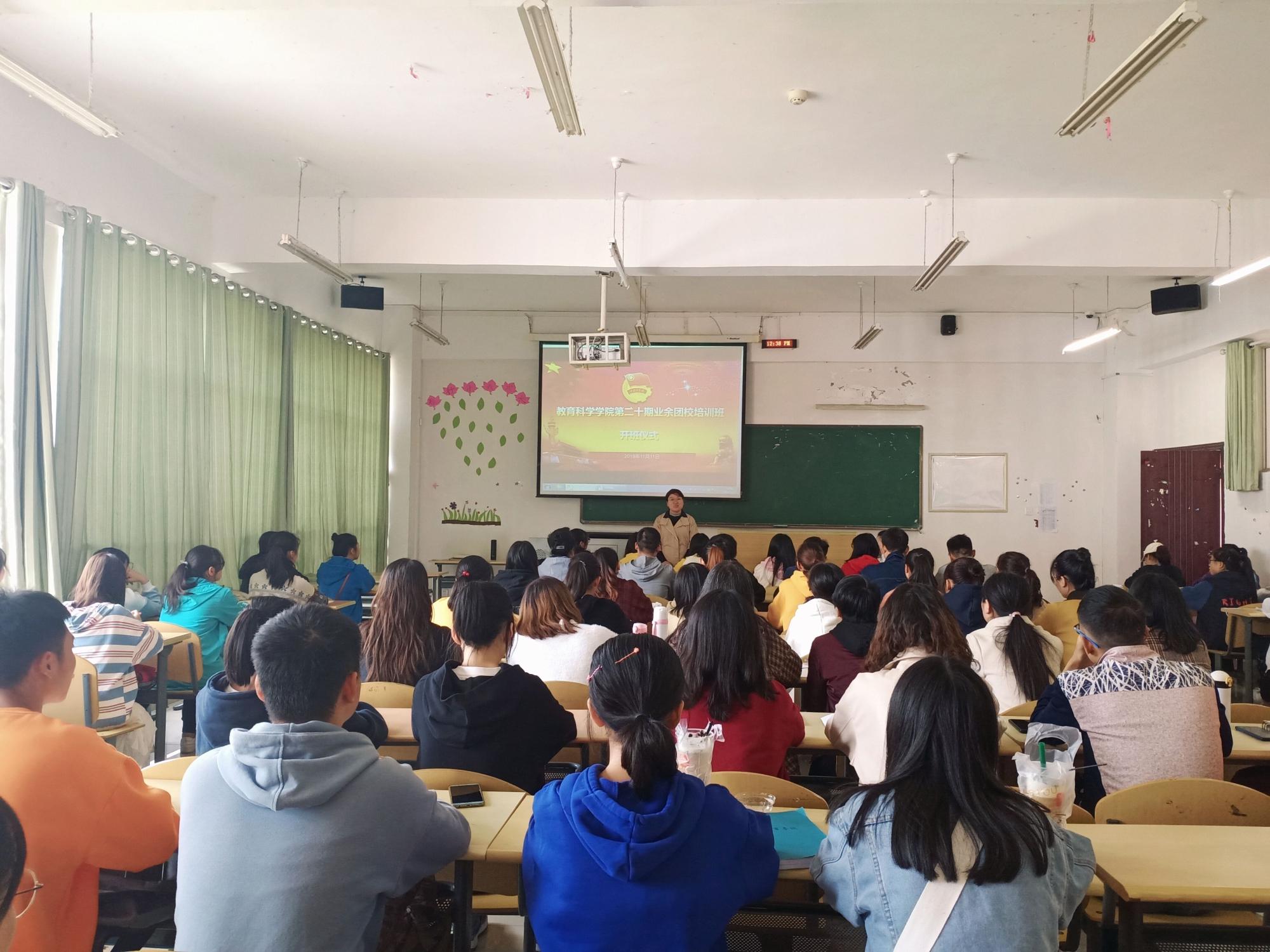 本次培训以全体成员齐唱《光荣啊 中国共青团》的歌声中拉开了帷幕。学员代表2018级学前教育专业赵康玲同学发言,动员参训学员严以律己、相互督促、积极向党组织靠拢。开班仪式上,傅小芳提出了以习近平新时代中国特色社会主义思想为指导,努力学习,报效祖国。