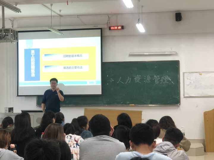 参赛教师杨宇鑫在“人力资源管理”的课程中,以“招聘和面试”为主要的教学内容,通过案例引入,以问题为导向,积极引导员工思考,注重员工对问题解决能力的培养。课后,李建年老师、郑玉莲博士、刘婧老师、罗凯老师、黄蓉老师围绕课程实施的目标、教学方法、教学组织方面开展研讨,特别针对参加此次教学比赛活动进行探索和经验分享。