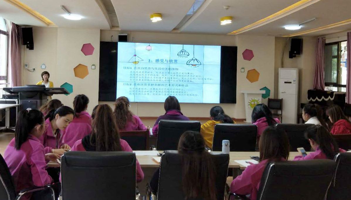 此次培训主要包含幼儿园美术活动该遵循的基本原理;幼儿园美术教育活动开展的形式;幼儿美术教育活动种类;幼儿美术教育活动注意事项等内容。申利丽教师首先对《3-6岁儿童学习与发展指南》中“艺术”领域进行了简单的解读,同时详细讲解了“感受与欣赏”、“表现与创造”在美术活动方面的指导建议。其次,申利丽教师详细列举了多种“幼儿美术绘画方式 ”与“幼儿园美术教育活动开展的形式”。再次,列举了“幼儿美术绘画载体”,并逐一讲解使用方法和注意事项。然后,在以上基础上引出“幼儿美术绘画工具、颜料 ” ,什么样的工具搭配什么样的材料和载体,申利丽老师都做了详细讲解。最后,申利丽老师将近两年到各大优秀幼儿园观摩到的美术类活动进行了分享,按照小班、中班、大班的顺序依次进行。