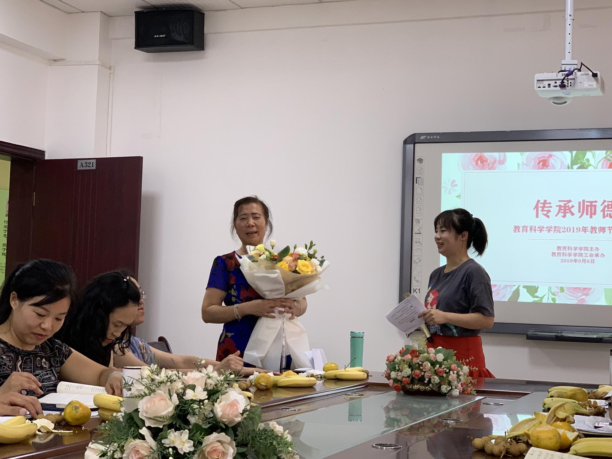 为退休教师刘启艳教授献花