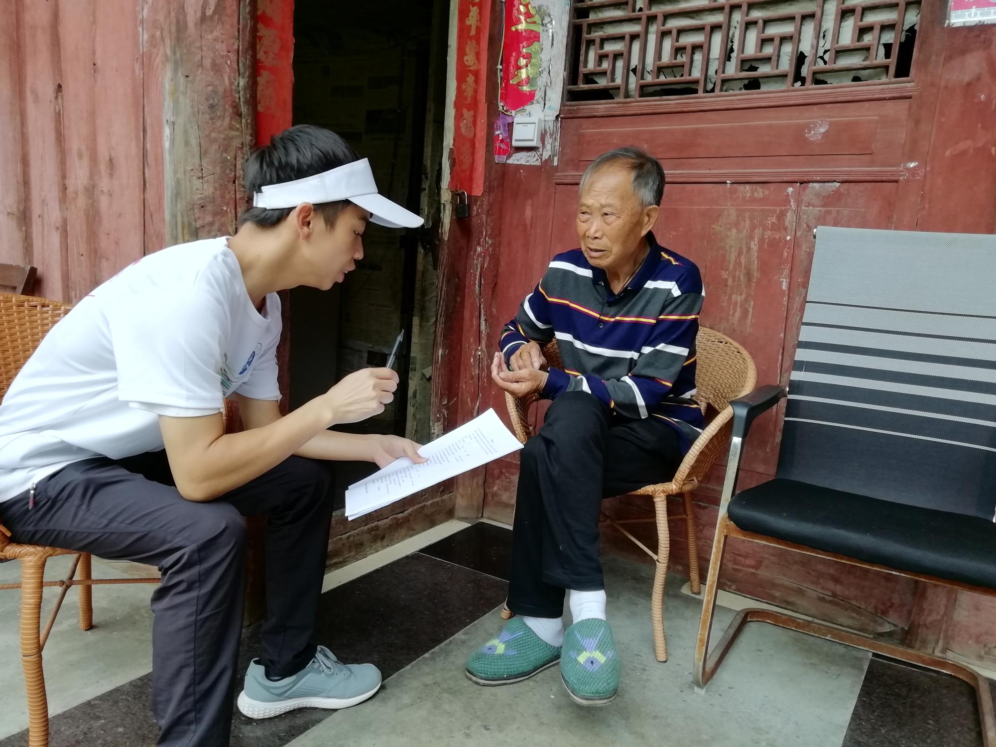 志愿者在给老人读问卷