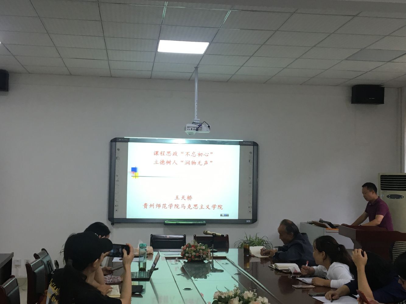 研讨会上,王天桥对课程思政的内涵作了详细地讲解,他认为所有的课程都应体现“立德树人”的指导思想,学前教育专业应构建课程思政体系,不能为思政而思政,应体现每门课思政的思路,形成育人的圈层效应,协同合力培养德智体美劳全面发展的社会主义建设者和接班人。王天桥强调一要充分发挥高校课程的育人功能,积极探索在高校课程中的“思政味道”;二要充分发挥各门课程课堂主渠道作用,明确立德树人的目的和意义,全面提高教师开展课程思政的意识与能力;三要充分发挥教材建设管理,把好教材选用关、管理关、建设关,守好意识形态阵地。四要调动一切育人因素,推进以德育德、以智育德、以美育德、以体育德、以劳育德、以行育德。