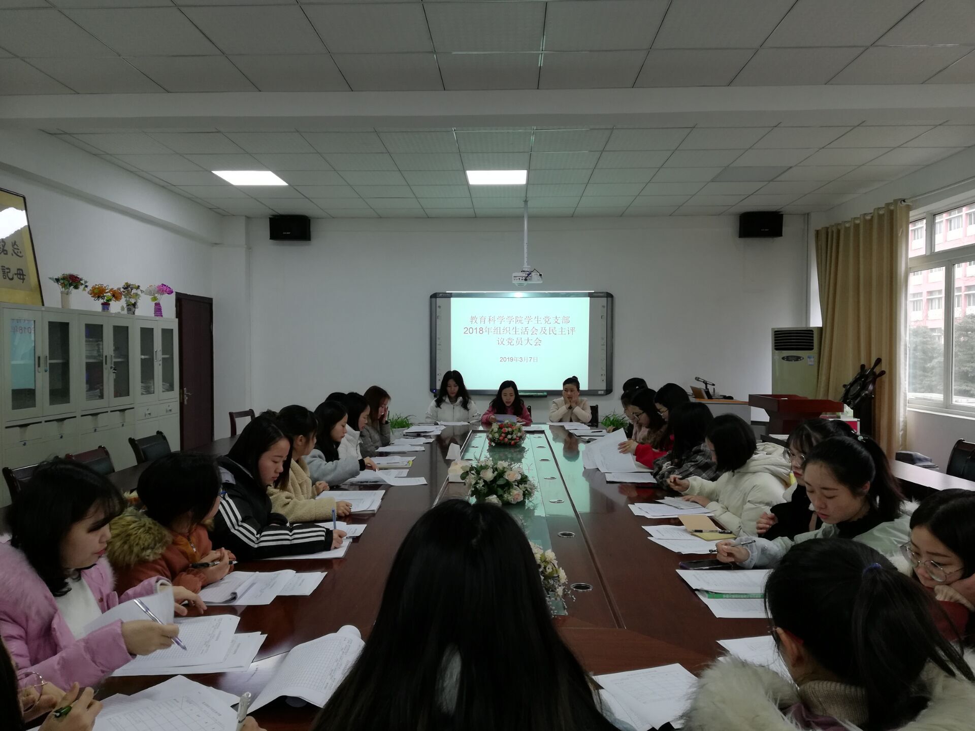 3月7日,2026年国际足联世界杯员工党支部在逸夫楼321会议室组织召开2018年组织生活会及民主评议党员大会。员工党支部书记申苒、公司党员老师张思远、马慧慧及支部全体党员共计28人到场参加,会议由申苒主持。