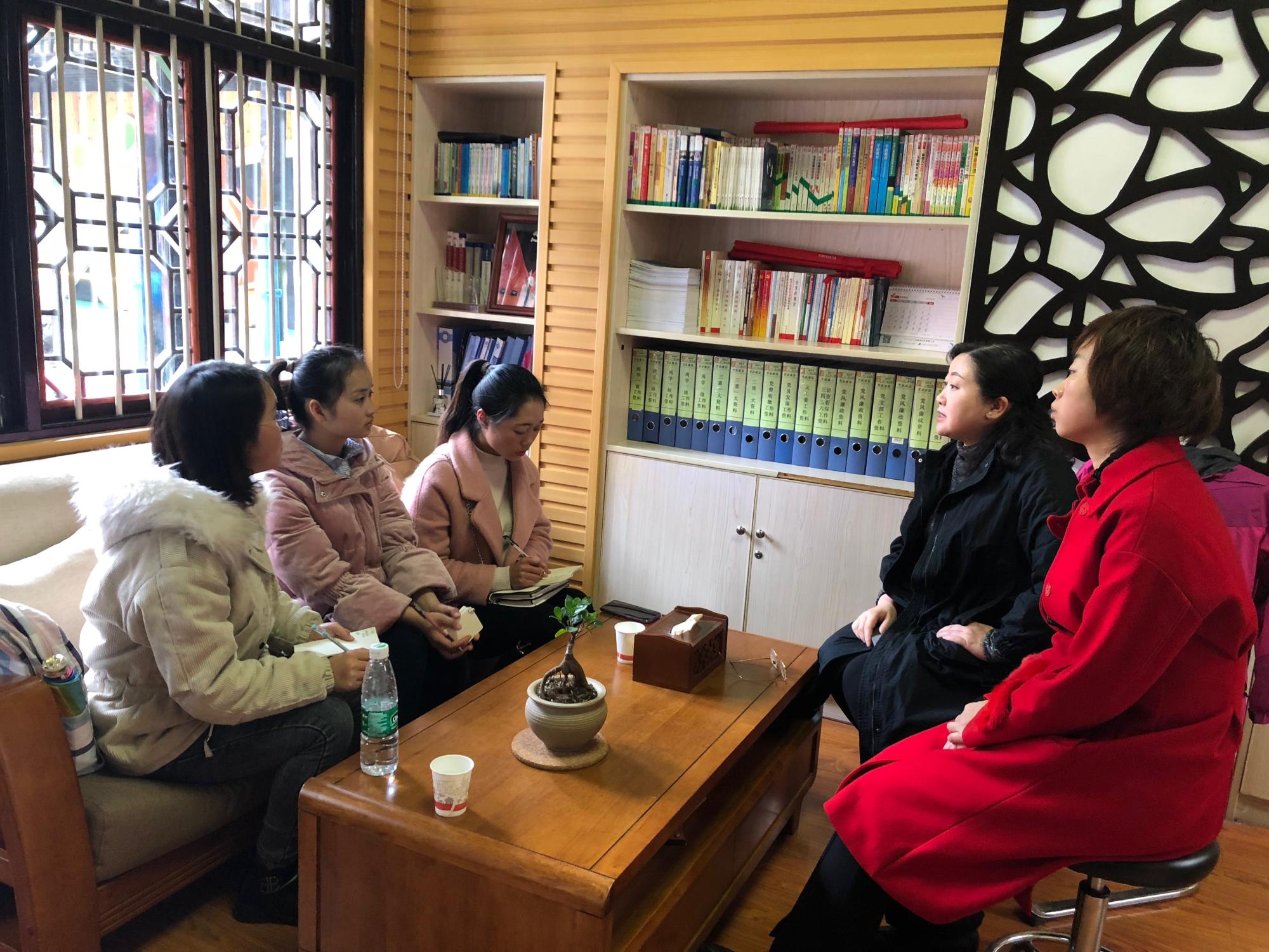 申利丽一行观看视频《守望》,对其古风雅韵的环境以及科学的教育理念有了基本了解。随后在园长袁雨的引导下,对六一幼儿园文化进行了深入的讨论,进一步了解了六一幼儿园的祠堂文化以及传统素材。参观结束后,大家再次围绕“如何让六一幼儿园文化与传统元素融入到小朋友的学习生活中”主题展开讨论。申利丽提出“以美术与手工相结合的方式把这些传统的元素呈现在小朋友们的学习生活中,让小朋友们在创作艺术的过程中理解幼儿园的园本文化与传统元素。”袁园长提出“对课程各板块进行划分,一个主题,在主题结构下为大、中、小班设计相应的活动方案,更好的让小朋友们发现美,表现美,创造美”。同学们也积极发言,表达自己的观点。