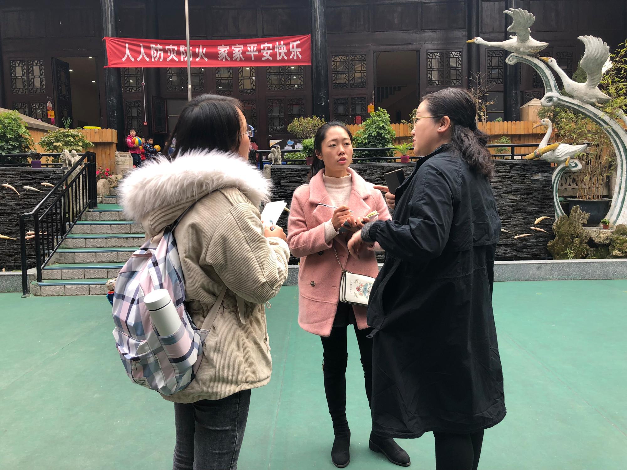 袁雨、申利丽和同学们进行讨论