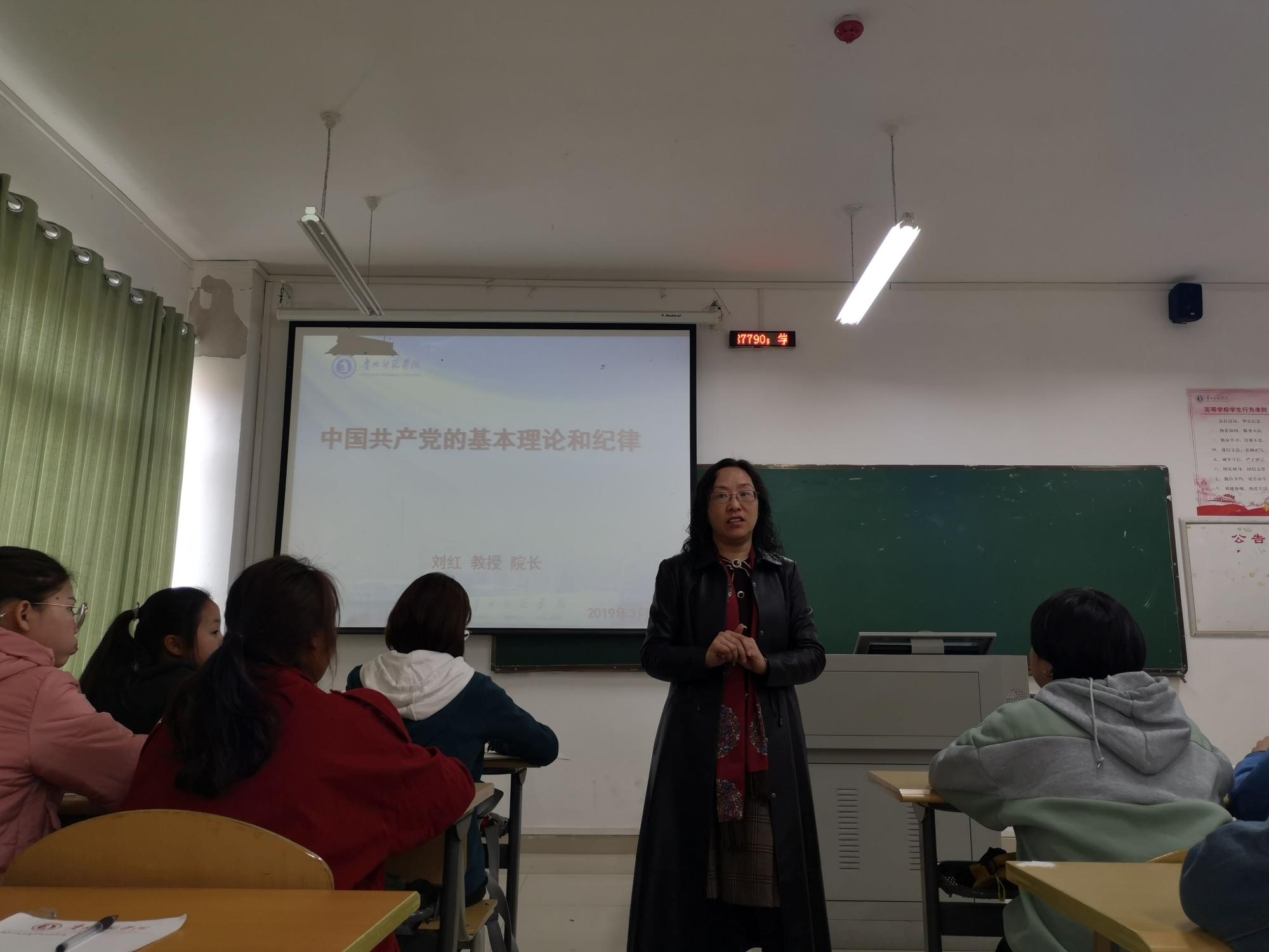 讲座中,刘红围绕中国共产党的性质、最高理想、根本宗旨等问题进行了详细地讲解;阐明了党的指导思想,并强调党的组织纪律和作风的相关规定和要求,希望全体学员要在集体学习及自我管理中遵守纪律、反思自我;自觉学习党的先进理论知识,提高政治辨别力,以党员的标准严格要求自己。