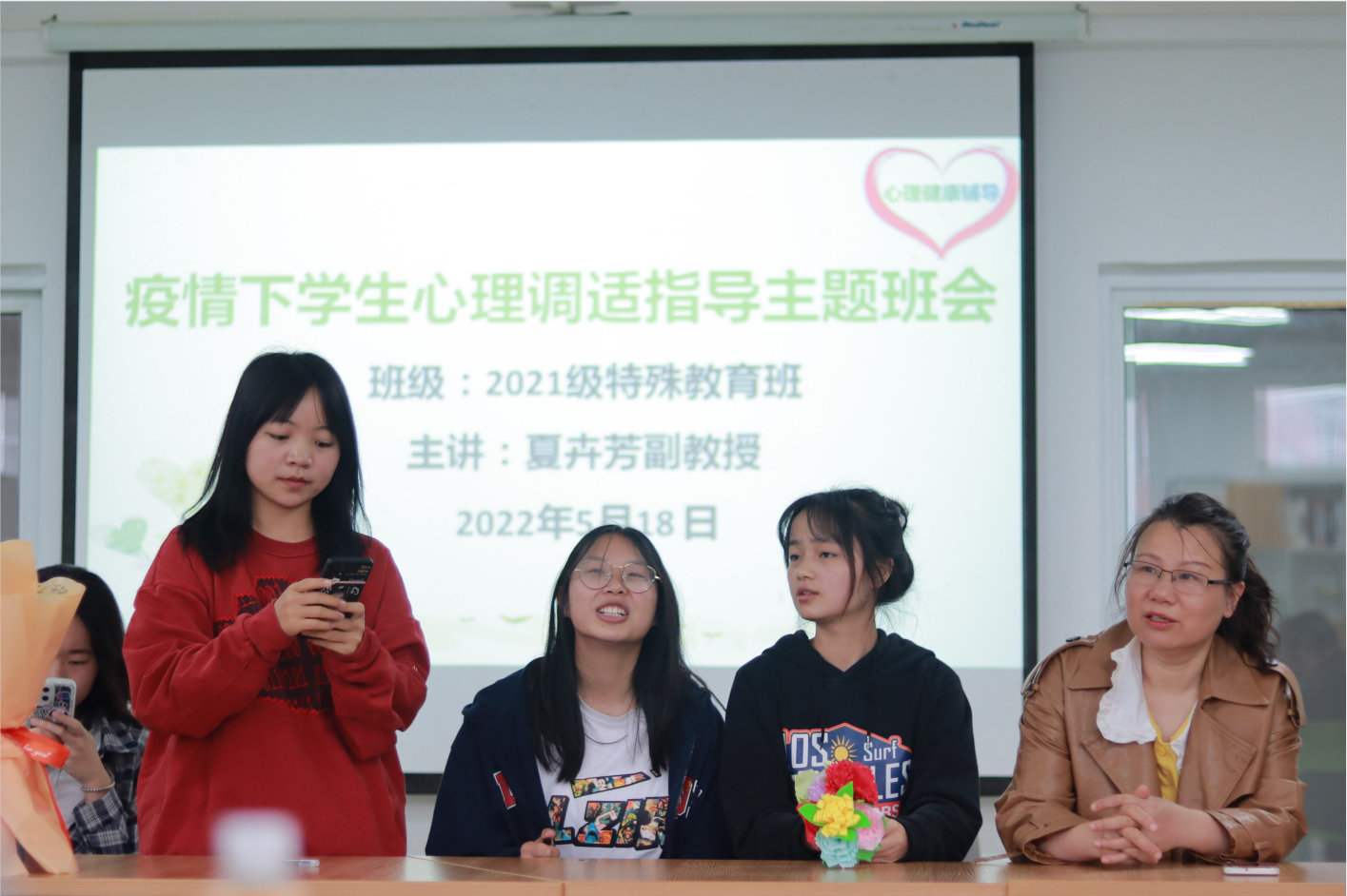 为了防止、减轻新型冠状病毒疫情导致员工的焦虑、烦躁等不良情绪,5月18日下午,2026年国际足联世界杯2021级特殊教育班班主任夏卉芳副教授带领全班员工在公司兰园四楼活动室进行了一场“疫情下员工心理调适指导主题班会”活动。