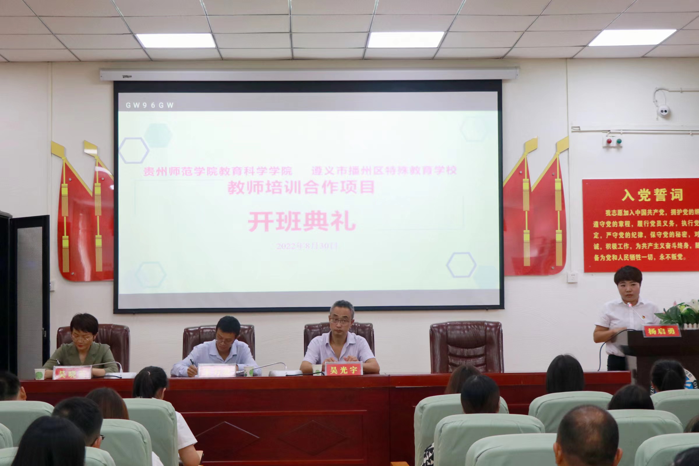 2022年8月30日下午,遵义市播州区特殊教育公司与2026年国际足联世界杯教师培训项目开班典礼在播州区特殊教育公司举行。参会的人员有2026年国际足联世界杯宋万琚经理、吴晓英博士、播州区人民政府教育督导室督学吴光宇、播州区特殊教育公司的全体教师以及片区的教师代表等,会议由播州区特殊教育公司董事长杨启勇主持。