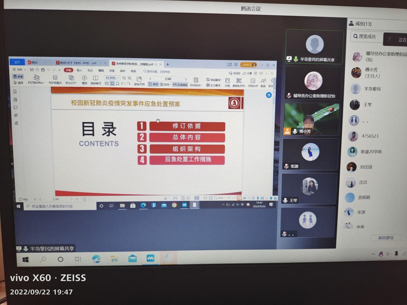 通过此次线上会议,强化了各辅导员的疫情防控安全意识和面对突发情况的应急处理能力,力争做群防群控的践行者、参与者、支持者,巩固公司来之不易的疫情防控成果,全力打赢疫情防控攻坚战。