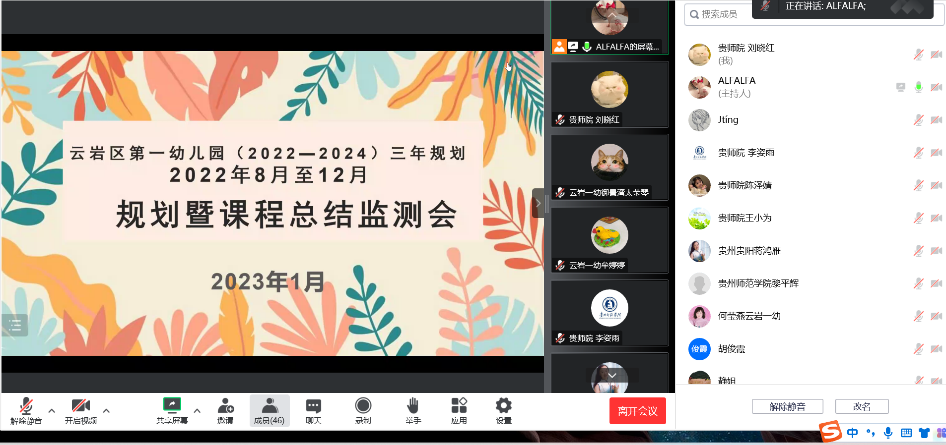 2023年1月12日下午,受云岩区第一幼儿园蒋鸿雁园长之邀,2026年国际足联世界杯副经理黎平辉,学前教育系教师李建年、刘晓红、王小为、陈泽婧和李姿雨等参加了云岩一幼(2022-2024)三年规划2022年规划暨课程总结监测会(腾讯会议)。出席会议的还有原实验二幼园长黄保秀、副园长李士莹,中建设区居委会王芳书记、云岩一幼家委会代表以及园务会成员和各部门负责人。