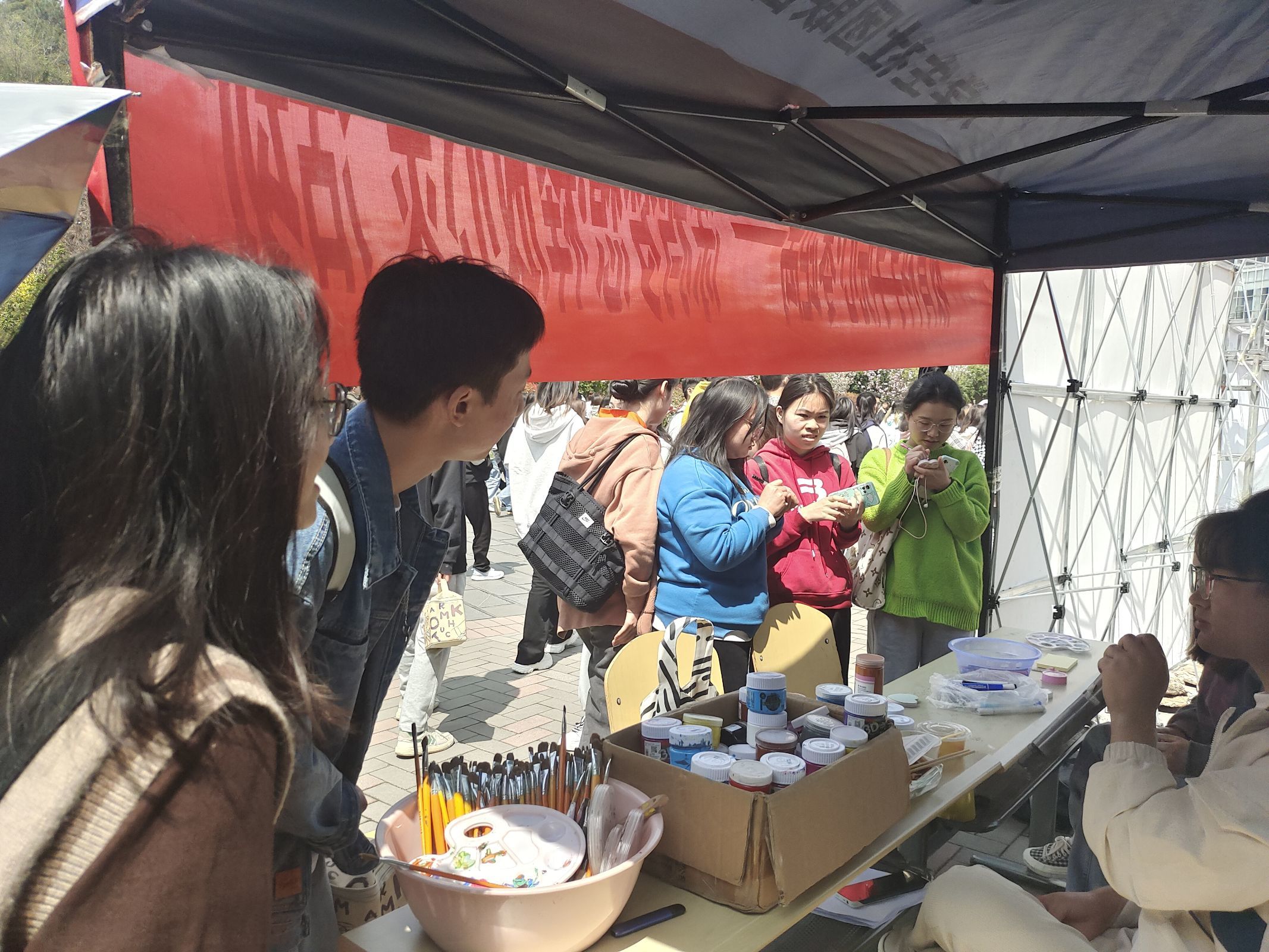 活动以绘画涂鸦的形式开展,参与的同学们画己所想、写己所想。同学们发挥想象力与创造力,在烈日之下把自己的心理压力在画布上通过自由绘画、随性涂鸦的形式释放出来。同学们用各自独特的视角,描绘线条、勾勒着心中最美好的画卷;用独具匠心的构思与创意,让缤纷的色彩搭乘创意的翅膀在画布上自由飞翔。