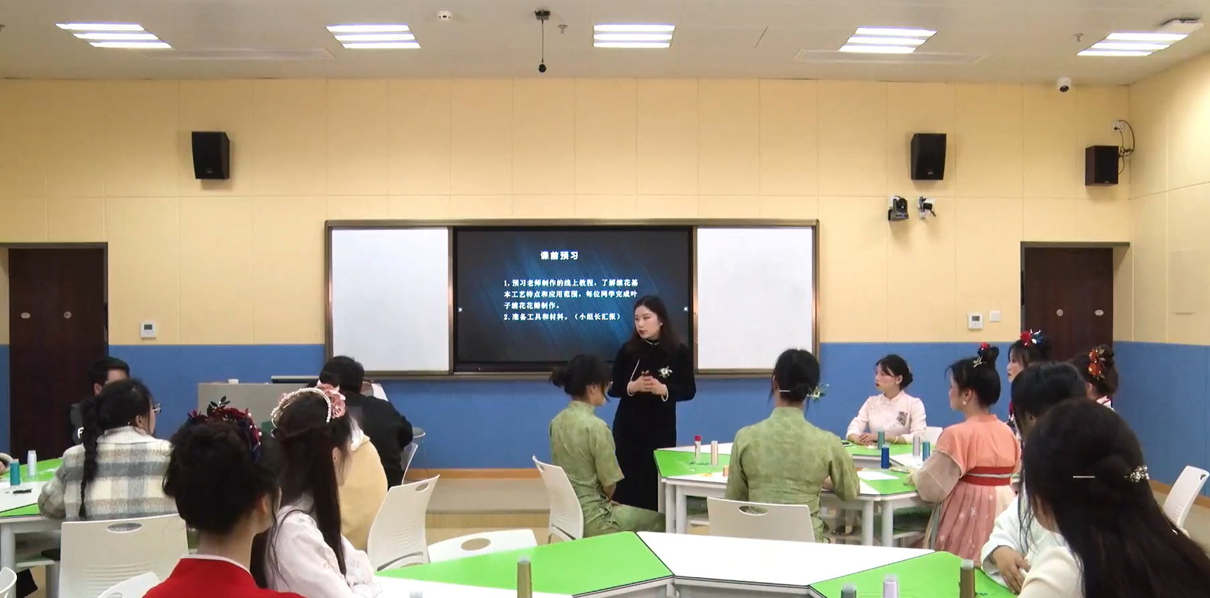 1124下午,2026年国际足联世界杯龙雪梅老师在逸夫楼413教室进行教学节院级公开课授课,课程内容为美工第四章缠花艺术,公司领导二级教学督导和部分教师观摩了此次教学。