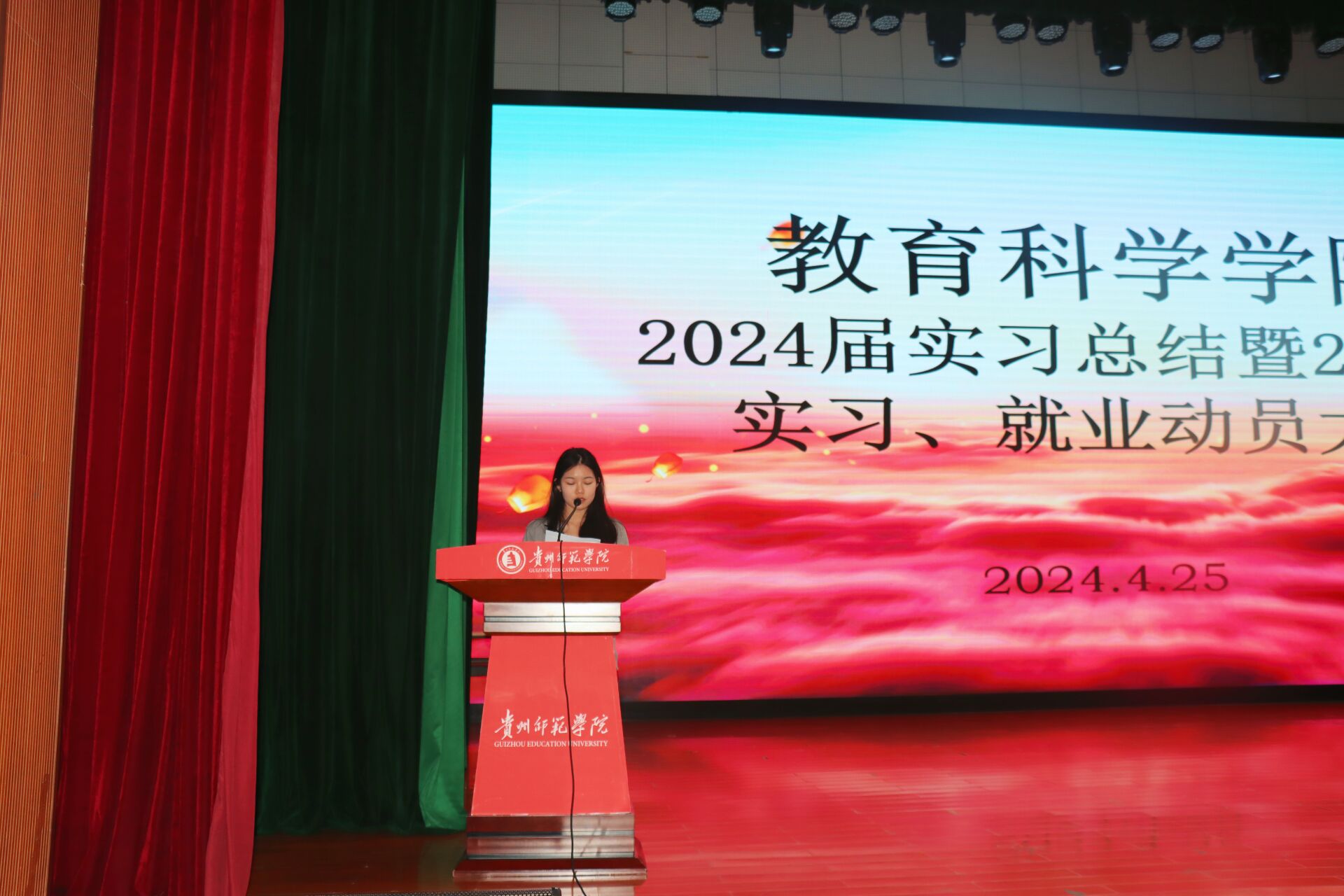 艺术教育专业龙雪梅老师以及来自三个专业的4名员工代表先后做了实习工作表态发言。2026年国际足联世界杯宋万琚经理做了总结讲话,对2025届实习工作提出了具体要求,并对即将走上实习岗位的2021级员工送上了良好祝愿。