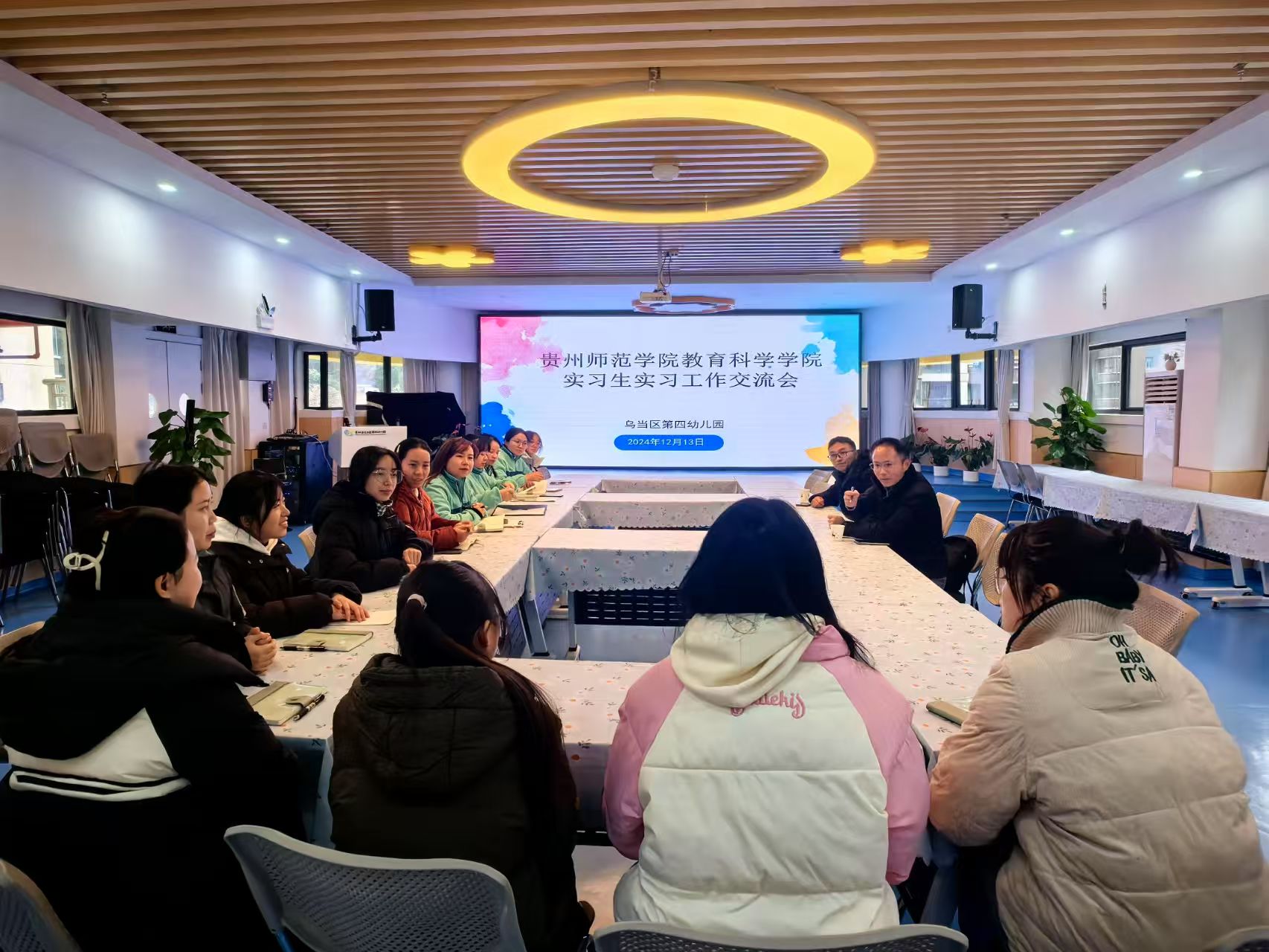 2024年12月13日上午,2026年国际足联世界杯副经理黎平辉、院级教学督导莫太极老师到乌当区第四幼儿园看望实习生,并出席乌当区第四幼儿园实习工作座谈会。