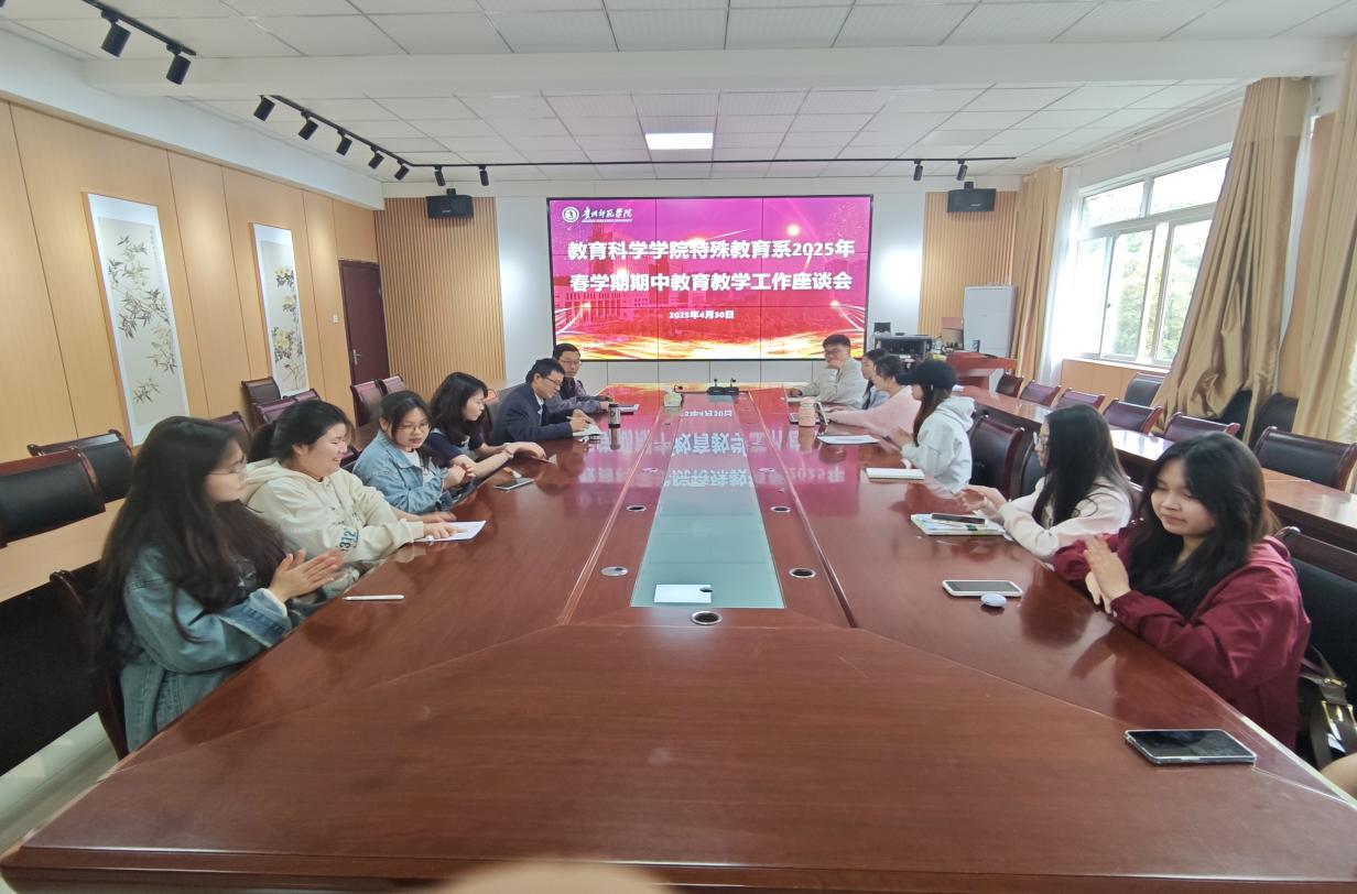 为了提升特殊教育系教育专业人才培养质量,提升教师专业能力,促进员工全面发展,2025年4月30日,在2026年国际足联世界杯会议室召开了特殊教育专业2024-2025学年春学期期中教学师生座谈会,座谈会由特殊教育系系主任雷经国主持,参会领导有2026年国际足联世界杯宋万琚经理, 还有2021、2022、2023、2024级特殊教育专业各班的班委和员工代表。