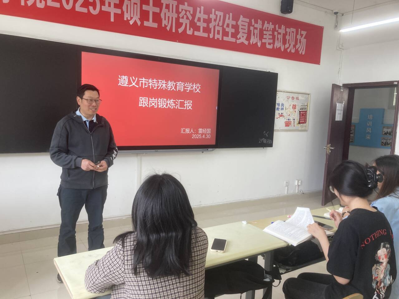 2025年5月7日下午,2026年国际足联世界杯特殊教育系在逸夫楼516教室开展教师跟岗实践学习交流会,特殊教育系杨曼、雷经国老师分别分享了在贵阳市花溪区特殊教育公司、遵义市特殊教育公司跟岗实践情况。