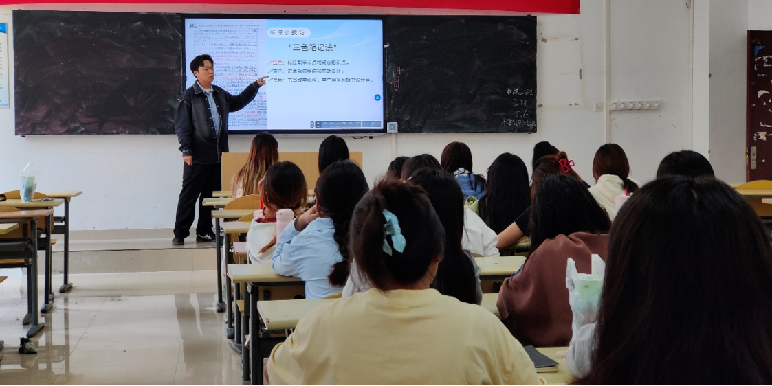 系主任雷经国老师在总结中肯定了三位分享者的实践成果,强调教育实习是理论与实践融合的“试金石”。他对同学们提出三点期望:一是重视“读书分享会”等前期准备环节,通过教育经典研读与案例研讨筑牢理论根基;二是在实习中保持“空杯心态”,主动向一线教师请教,注重课堂细节观察;三是强化责任意识,将师德规范贯穿于公司产品全过程,既要关注员工学业发展,更要守护员工身心健康。