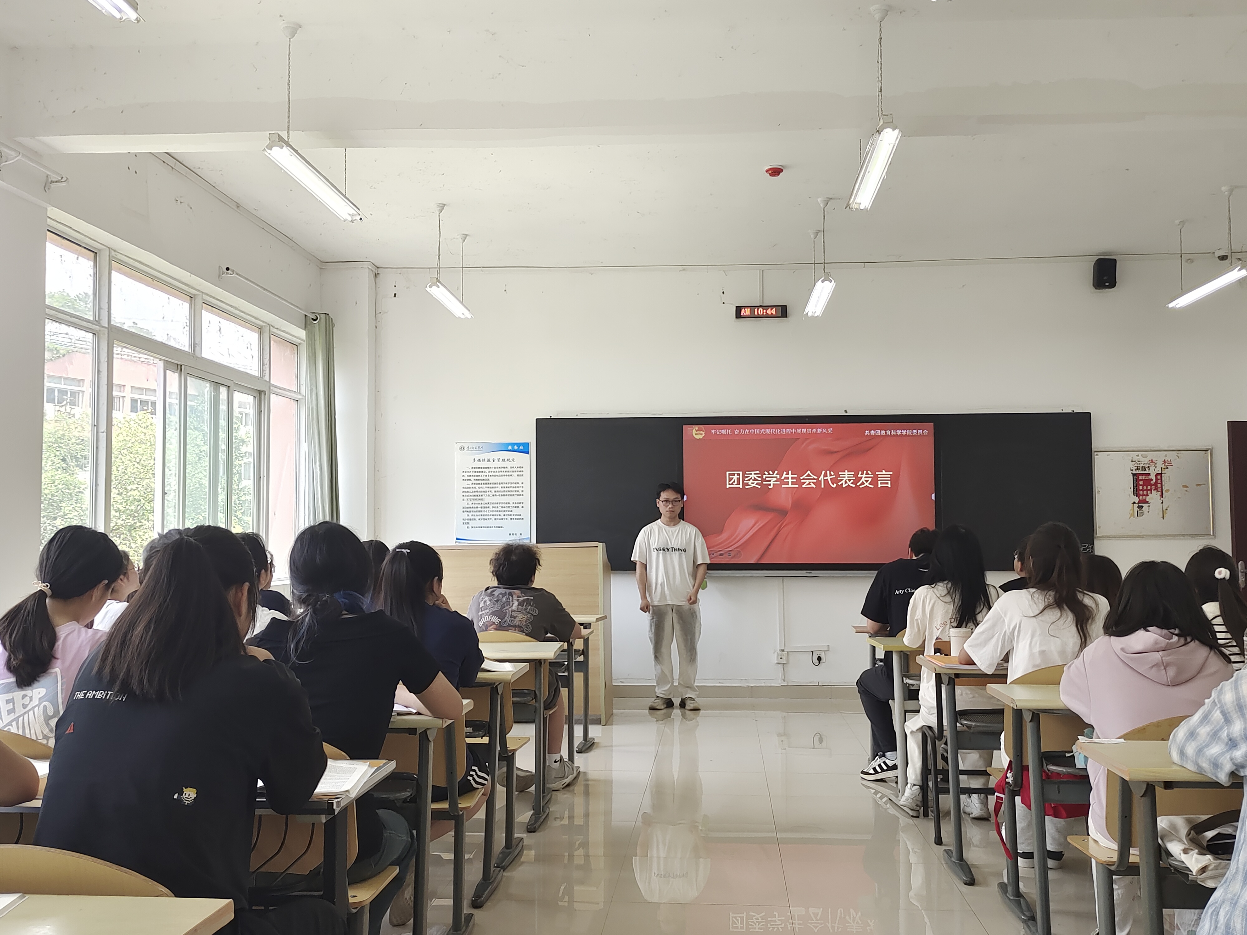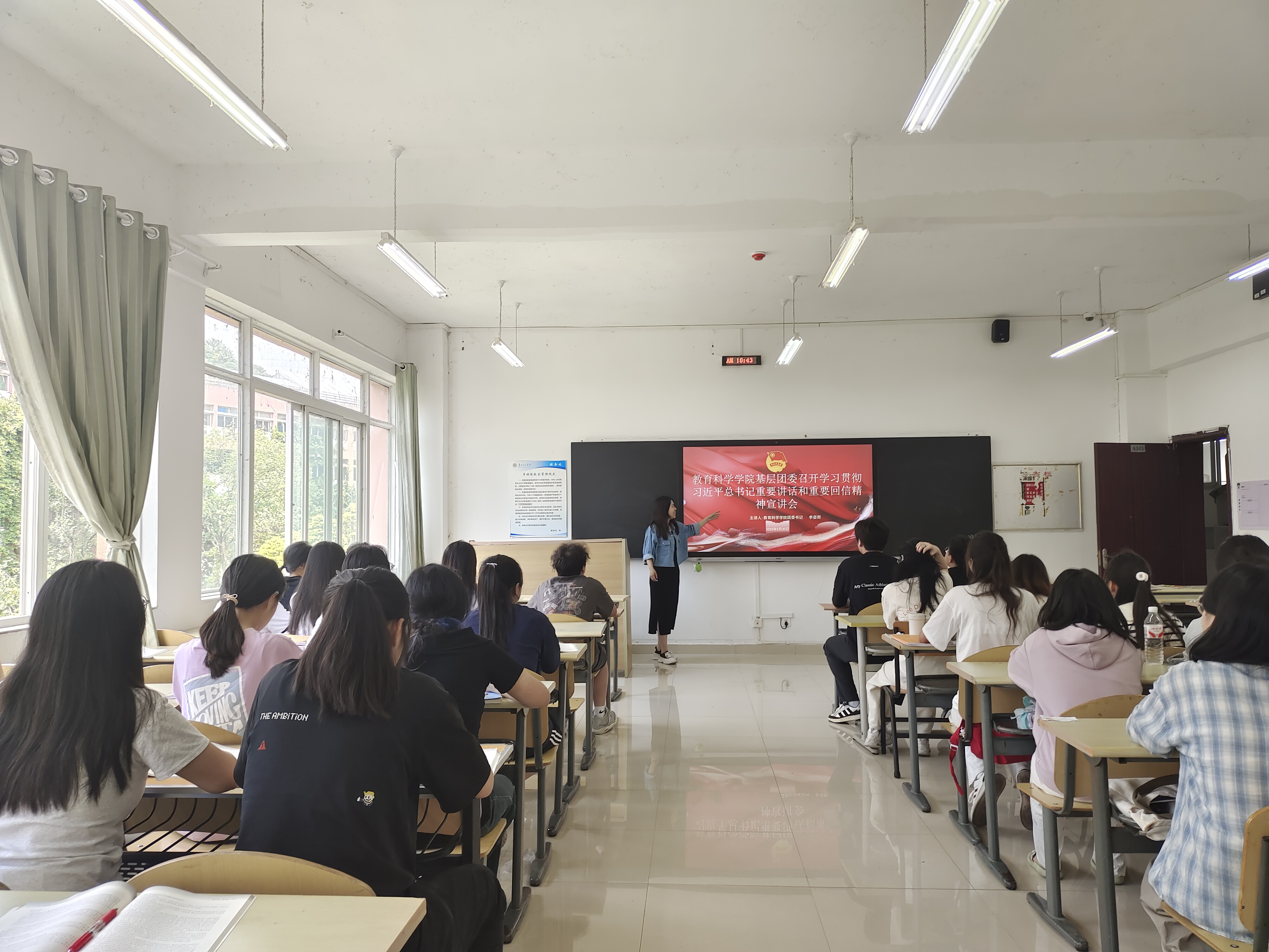 最后,李姿雨总结讲话并提出要求:希望各团支部全覆盖开展主题学习,深悟精神实质;青年学子投身教育实践,在志愿服务中彰显价值。
