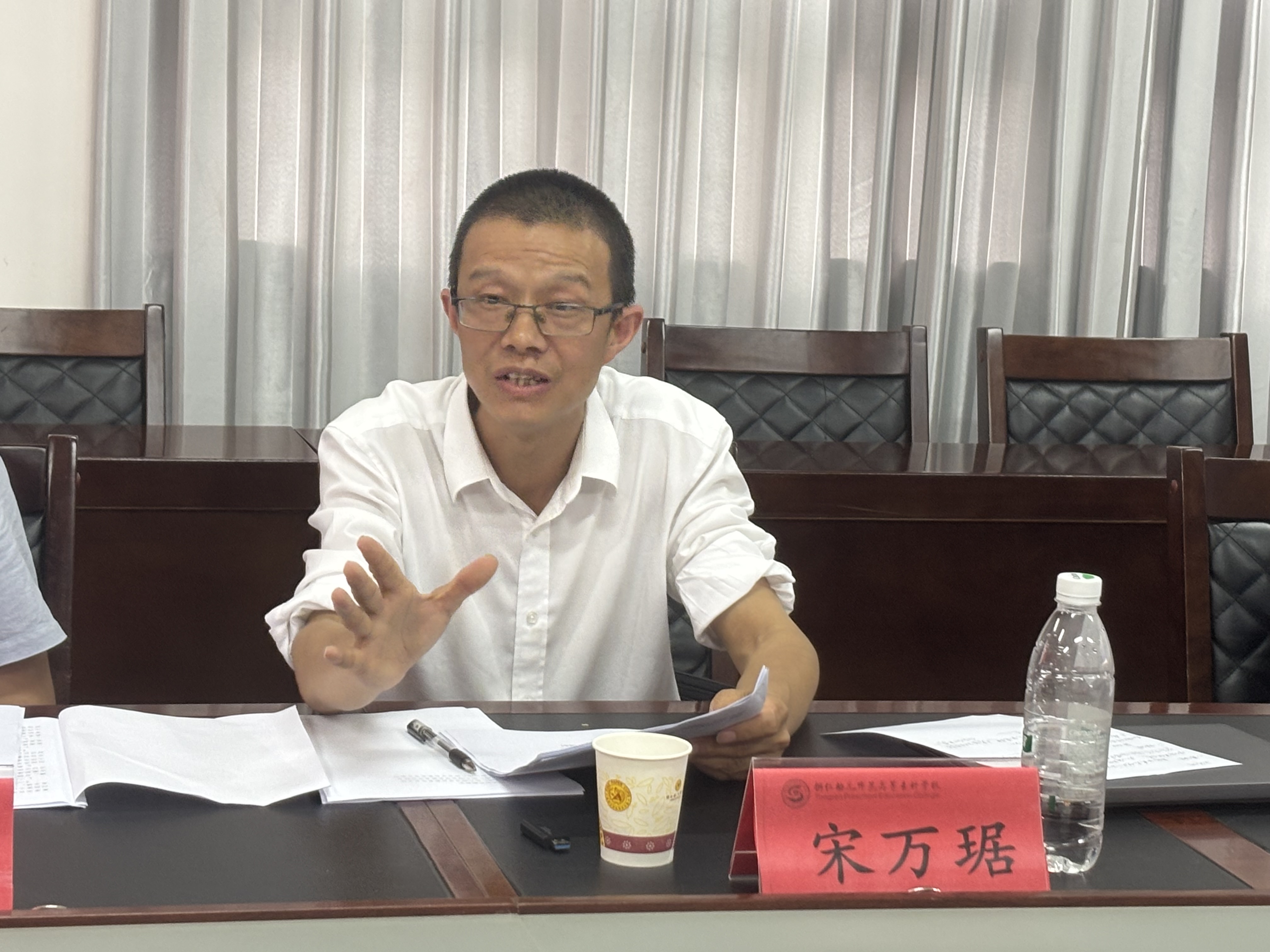 铜仁幼儿师专学前教育系副主任代晓明对宋万琚一行表示了热烈的欢迎。代主任在座谈会上详细介绍了铜仁幼儿师范高等专科公司的概况,并与公司就首届专升本班员工的技能考试、实习就业、专业设置、资源共享以及办学场地等方面进行了深入交流。