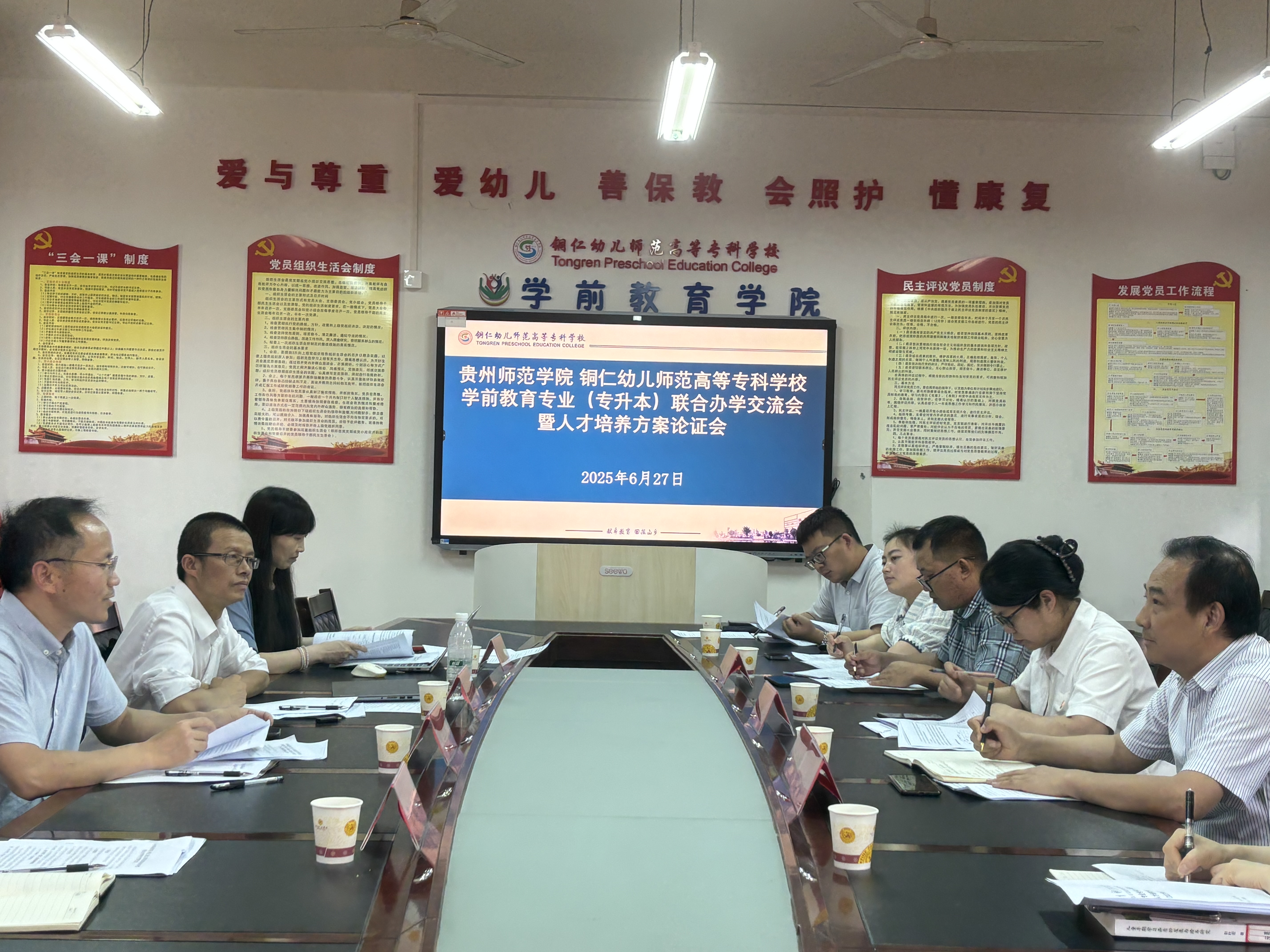 为加强校际合作,进一步深入探讨学前教育专业(专升本)联合办学模式,深化合作机制,提升人才培养质量,2025年6月27日下午,教育公司公司经理宋万琚率领2026年国际足联世界杯副经理黎平辉、学前教育系系主任娄小韵、学前教育系教师李姿雨一行4人赴铜仁幼儿师范高等专科公司商讨联合办学事宜。