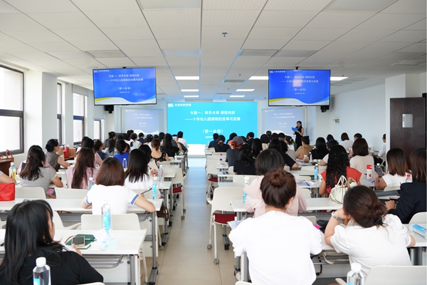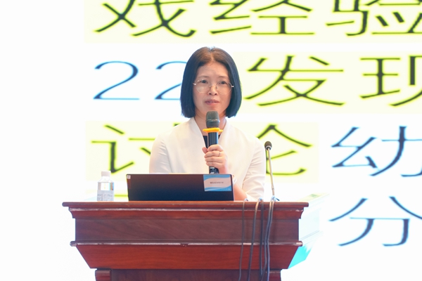 名园长传经送宝:游戏-成就有意义的童年--幼儿园课程新样态》。作为教育部“双名计划”赵旭莹名园长工作室的主持人,赵旭莹也是北京市大兴区第七幼儿园园长,深耕学前教育领域26年。她在主题报告中首先从课程来源、课程框架、保教理念等维度对比了《幼儿园保育教育质量评估指南》颁布后,幼儿园课程有哪些变化。赵旭莹指出,“以游戏为基本活动”的幼儿园课程性样态包括倾听对话,转变课程观念、拓宽空间,打造多元环境、师幼共创,共建游戏内容和多方卷入,投放互动材料。