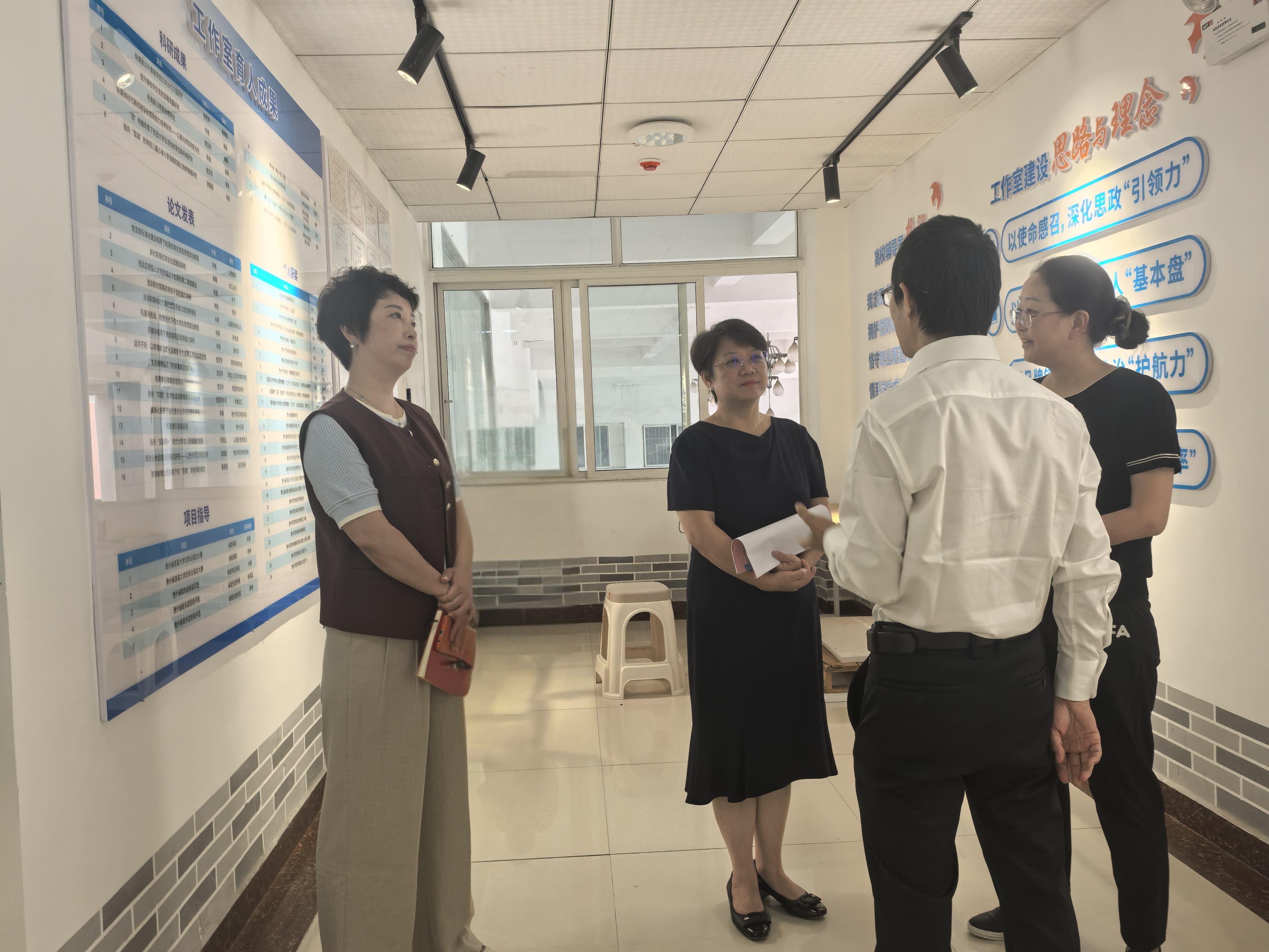 王蜀黔走进荏苒时光辅导员工作室,与工作室主持人亲切交谈,仔细听取工作室建设的方向、进展和成果的汇报。看着工作室取得的成果,王黔蜀表示充分的肯定,她希望工作室能够拓展平台,结合专业优势,充分发挥示范引领作用,取得更多更好的成绩。