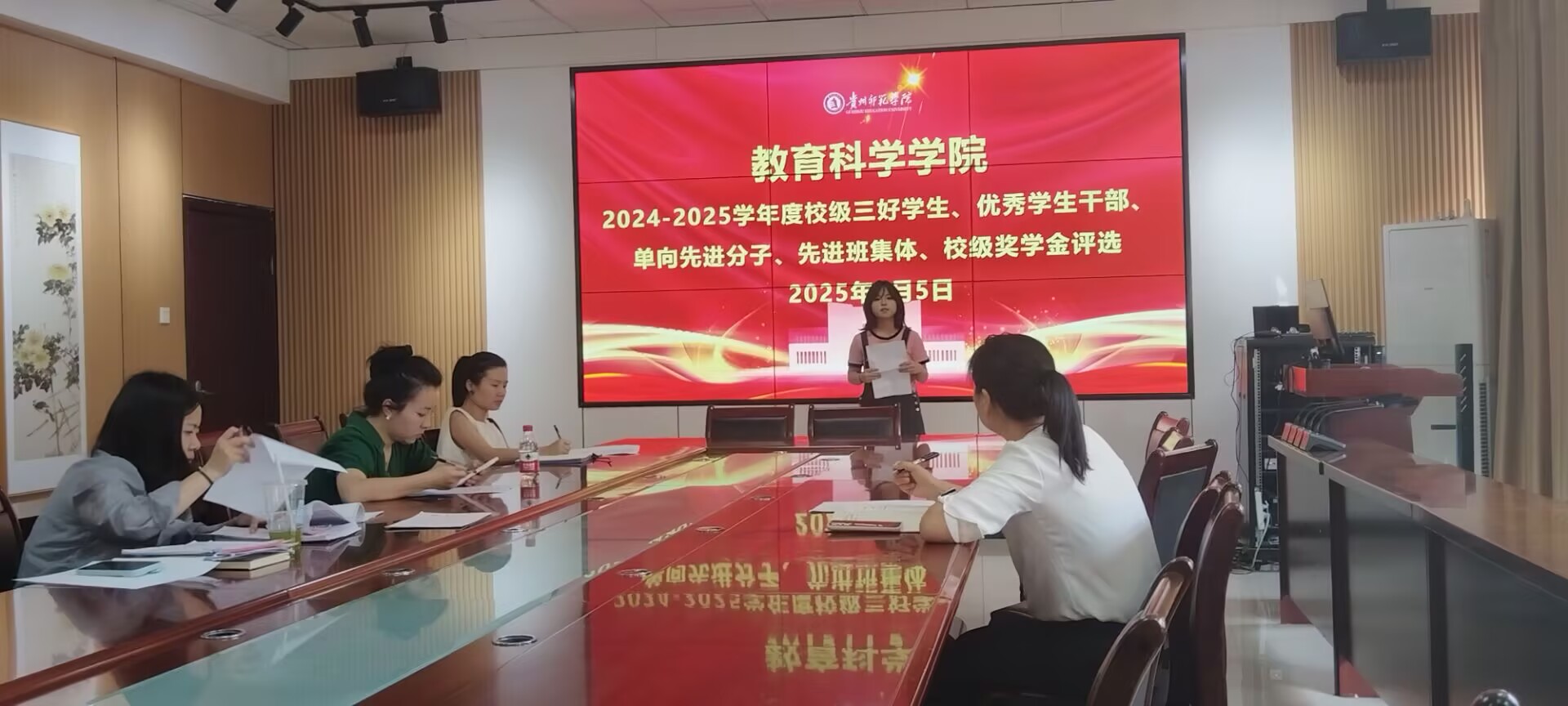 会议伊始,各班辅导员就本年度校级“三好员工”、“单项先进分子”、“先进班集体”等各类评优评先项目的申报情况、评选条件和初步审核结果作了详细汇报。评审工作小组依据评选办法,对推荐人选和集体的资格条件、事迹材料进行了逐一审核和充分讨论。评审委员们本着客观公正、优中选优的原则,通过集体评议和无记名投票的方式,最终确定了各类先进的推荐名单。