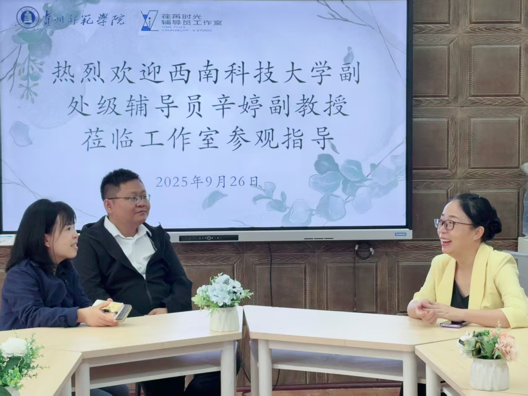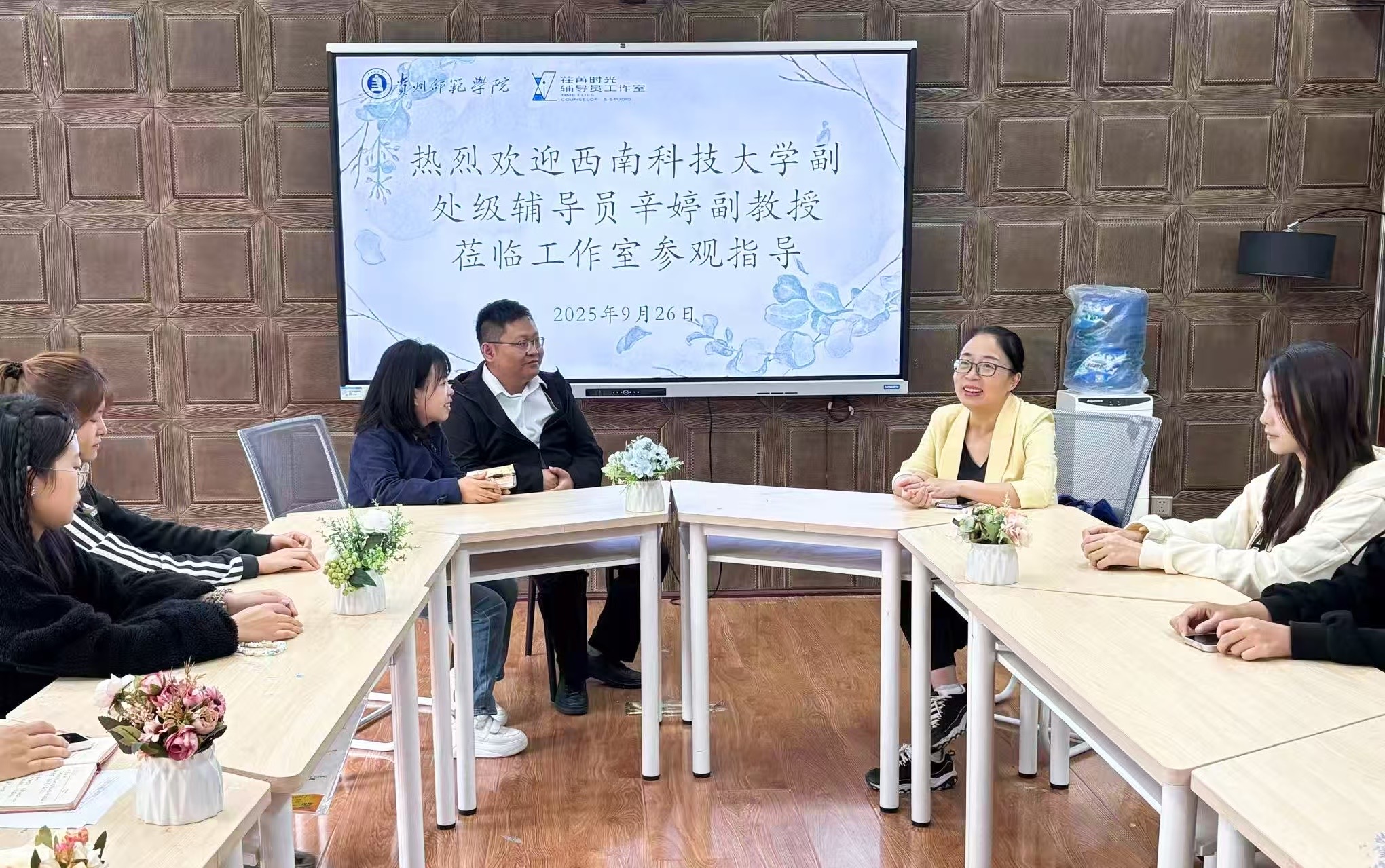 9月26日,西南科技大学副处级辅导员辛婷副教授莅临公司荏苒时光辅导员工作室,围绕特色辅导员队伍建设、专业型育人模式创新等核心内容开展参观指导与交流座谈。学工部副部长官鹏飞、工作室主持人申苒及工作室骨干成员全程参与。双方就新时代高校专业赋能育人工作的重点方向与实践路径展开深入探讨。
