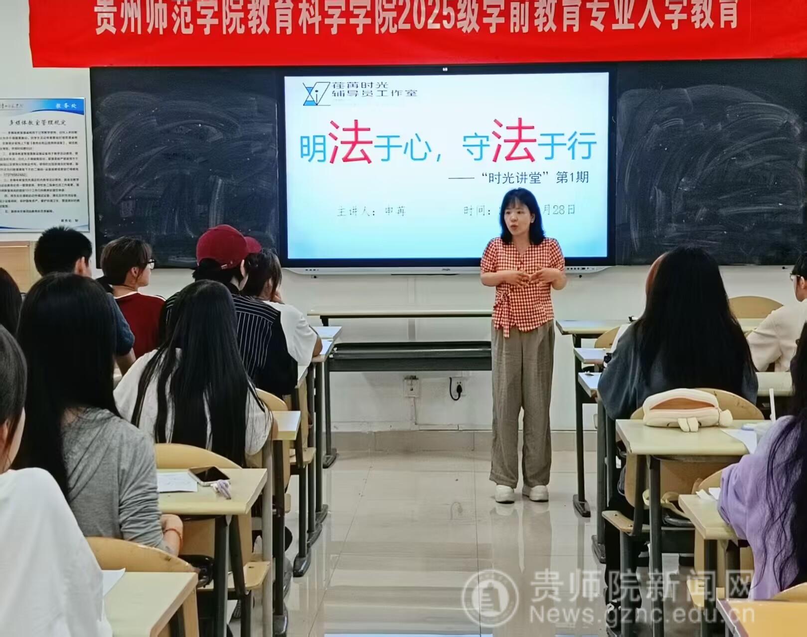 为切实提升师范生法治素养,将法律意识融入学习生活与未来职业发展,9月28日,荏苒时光辅导员工作室“时光讲堂”系列讲座正式启动,工作室主持人申苒以“明法于心,守法于行”为主题开启了第一期主题讲座,100名师范生到场聆听。