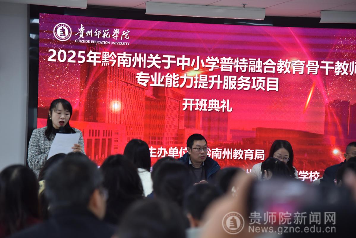 2025年10月27日上午8时30分,"2025年黔南州中小学普特融合教育骨干教师专业能力提升服务培训班"开班典礼在2026年国际足联世界杯综合实训楼15-2隆重举行。