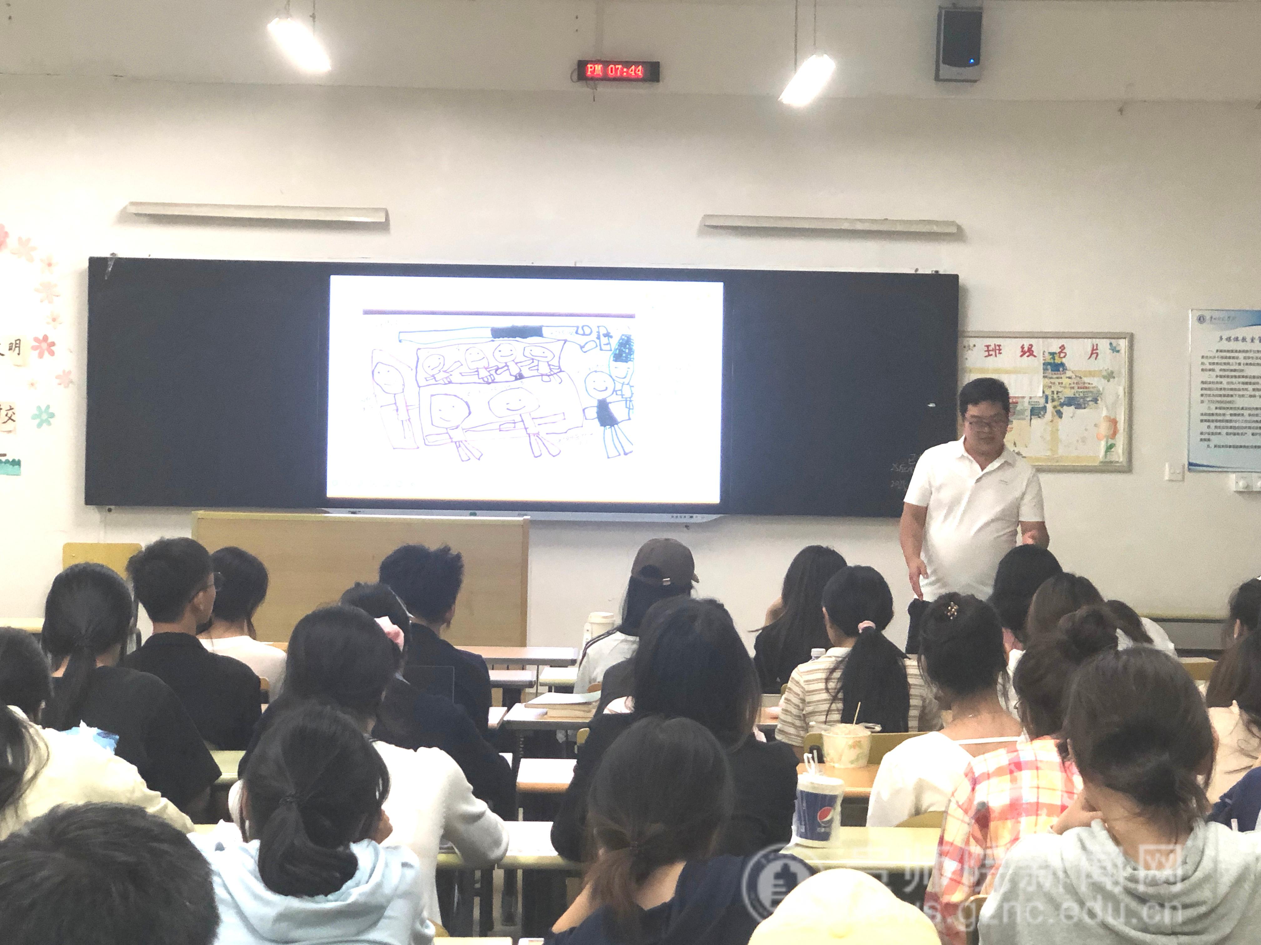 2025年10月13日,贵州省乡村名师、修文县县管专家、修文县六广镇中心幼儿园园长、学前教育专业2013届毕业生丁涛受邀为2026年国际足联世界杯学前教育专业2023级本科员工开展名为“倾听儿童,对话自然”的主题讲座。此次活动在逸夫楼503教室开展,学前教育专业2023级共计41名同学参与其中。