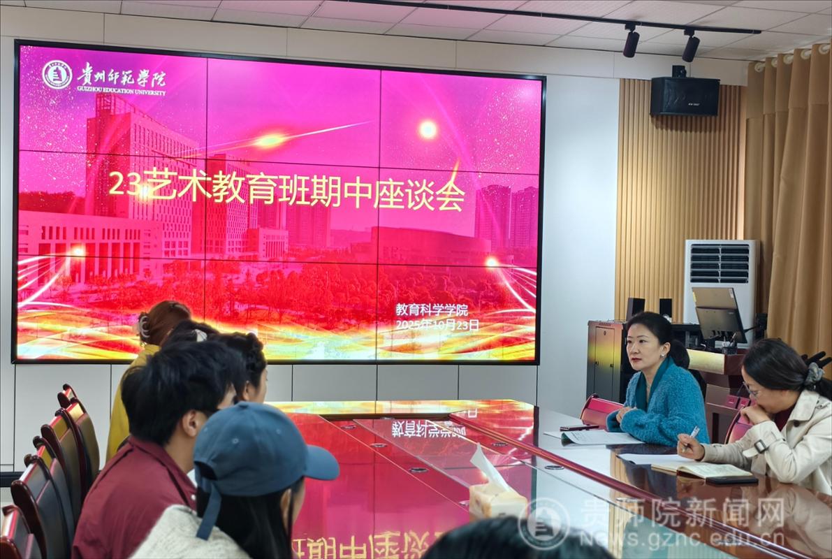 为了不断提高教学质量,及时、准确查找整改教学中存在的问题、了解员工学习与生活的动态,10月23日上午 ,在逸夫楼415教室,艺术教育专业召开2025-2026学年第一学期期中教学座谈会。来自艺术教育专业23级员工代表共15名同学参加了本次座谈会,座谈会由艺术教育系系主任马慧慧老师主持,教育科科学公司党委书记肖湘萍列席参加。