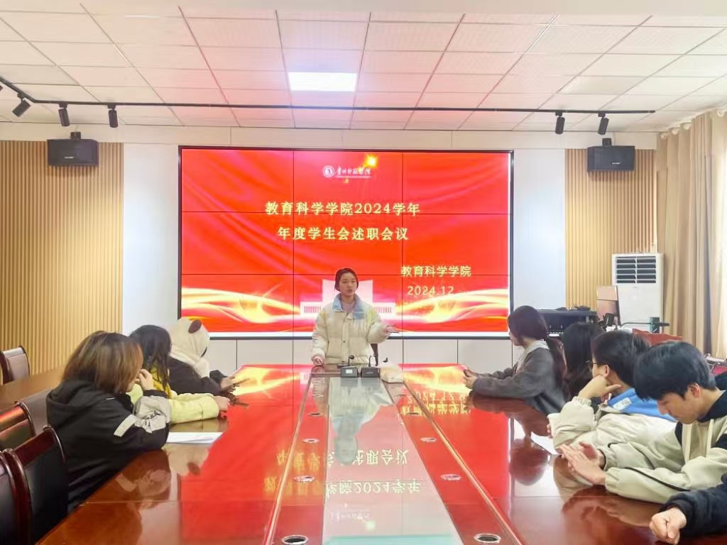 首先,主席团代表陶丽进行发言,她充分肯定了各部门在过去的努力与成绩,特别强调了在校园活动丰富、志愿服务拓展、员工权益维护等方面取得的显著成效,同时也针对各部门存在的问题提出了宝贵的建议,鼓励大家在今后的工作中加强协作、勇于创新,不断提升服务同学的能力和水平。随后,各部门负责人依次上台述职。他们通过精美的PPT 和详实的数据,全面展示了本部门在过去一学期的工作成果,包括组织的各项活动、取得的成绩以及存在的不足。例如,宣传部在校园文化传播方面创意十足,通过多种新媒体渠道扩大了活动影响力;组织部在团员管理和团建活动组织上严谨有序,有力推动了团组织建设。同时,他们也对工作中的问题进行了深刻反思,并提出了切实可行的改进措施和未来工作计划,展现了对员工会工作的热情与担当。最后,团委员工会每一位成员都认真听取了负责人的述职报告,并对自己部门工作进行了深刻的反思与整理。