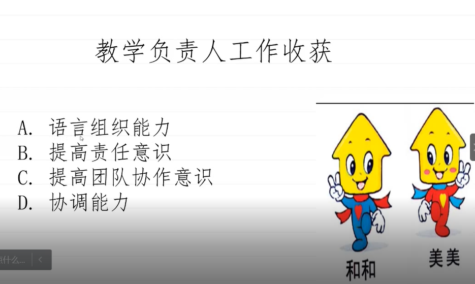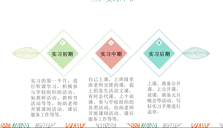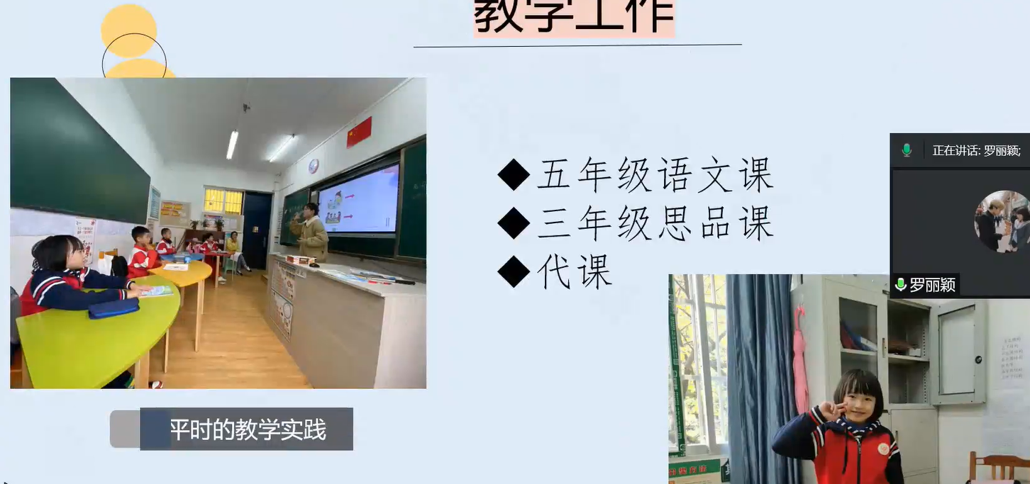 会议伊始,主持人介绍本次会议的目的,紧接着参与评选的各位同学有序进行实习汇报。汇报内容主要从实习单位介绍,实习期间担任的工作以及实习过程中的收获等三方面进行。实习初期主要是熟悉环境、了解员工学习情况以及通过跨班级跨学科等方式进行听课学习。实习中期,主要从事上课、研讨会议以及协助老师管理班级工作。实习后期通过上公开课,反复打磨教学设计能力以及上课技巧。通过以上三个阶段,同学们都收获颇丰。同学们都表示在教学设计、教学巧、语言组织以及课堂突发事件处理等方面能力均得到很大提高,上课时教态也更自然,课堂氛围也更加和谐了。