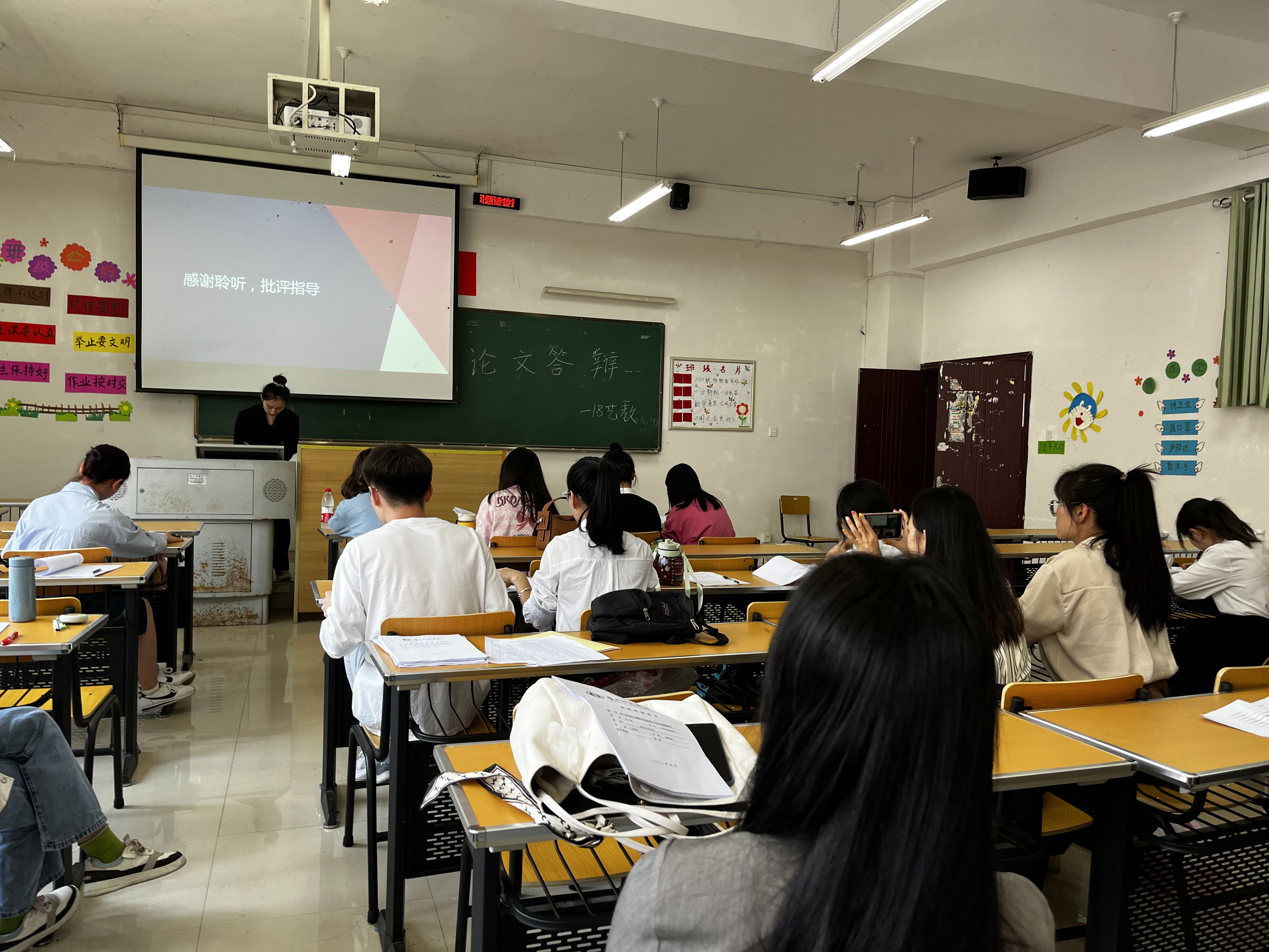 每位同学通过PPT阐述了自己的研究问题、内容、方法和结论等,并认真听取、回答了答辩老师提出的问题。答辩老师则秉着严谨细致、认真负责的学术态度从论文选题、理论框架、研究方法、论文格式等方面对论文进行了全面的评审,并提出很多修改意见和建议。
