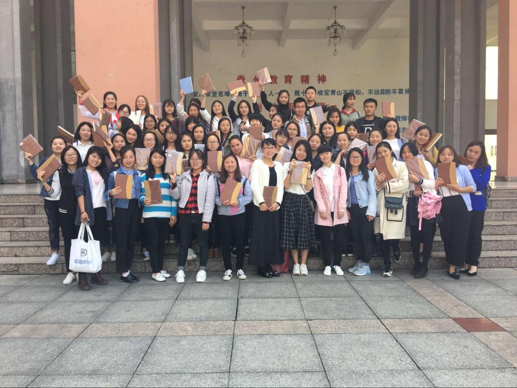 汇报环节结束后,在场的老师对每一组同学的汇报进行了点评并对整个读书活动做了简要的总结,还为每一位同学颁发了笔记本作为读书活动的奖励与纪念。最后,参与活动的全体师生于艺术公司楼前合影留念,活动圆满结束。